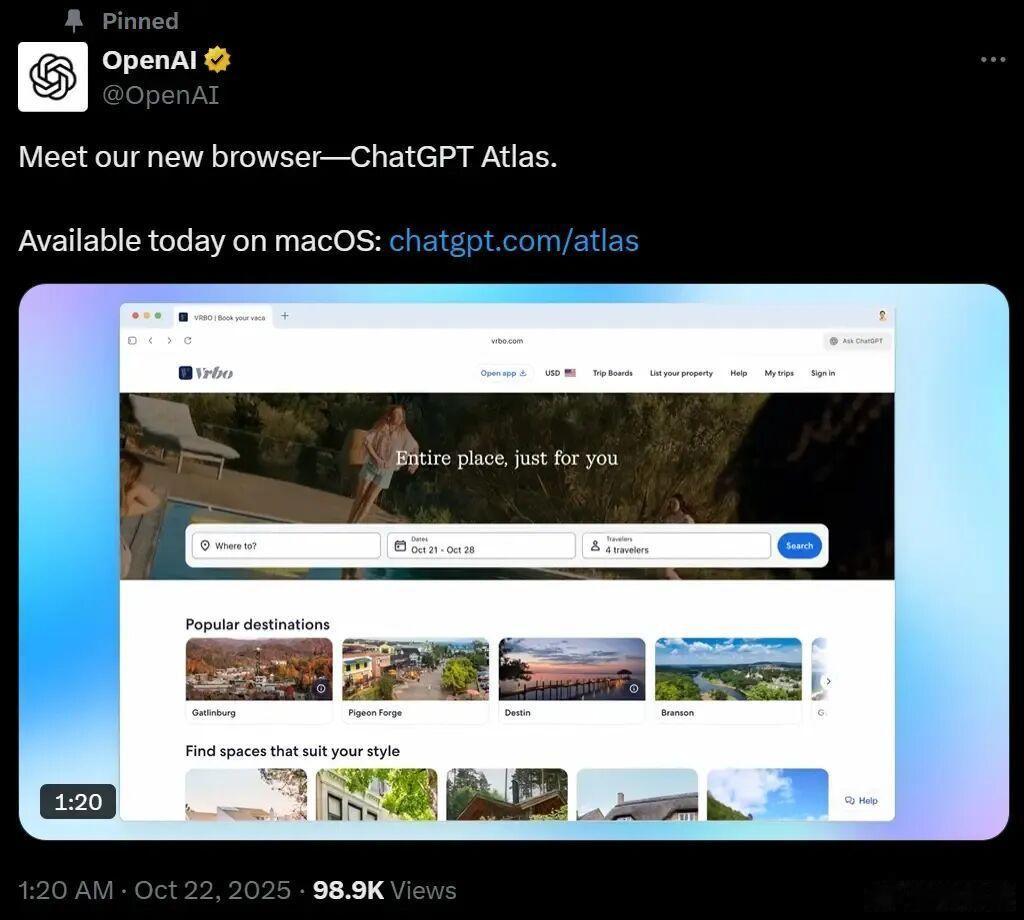 站在行业视角下,它并非孤例。过去一个月里,OpenAI也宣布推出自家浏览器Atlas,借ChatGPT余威进攻到Google腹地,将“代理”之争进一步白热化。