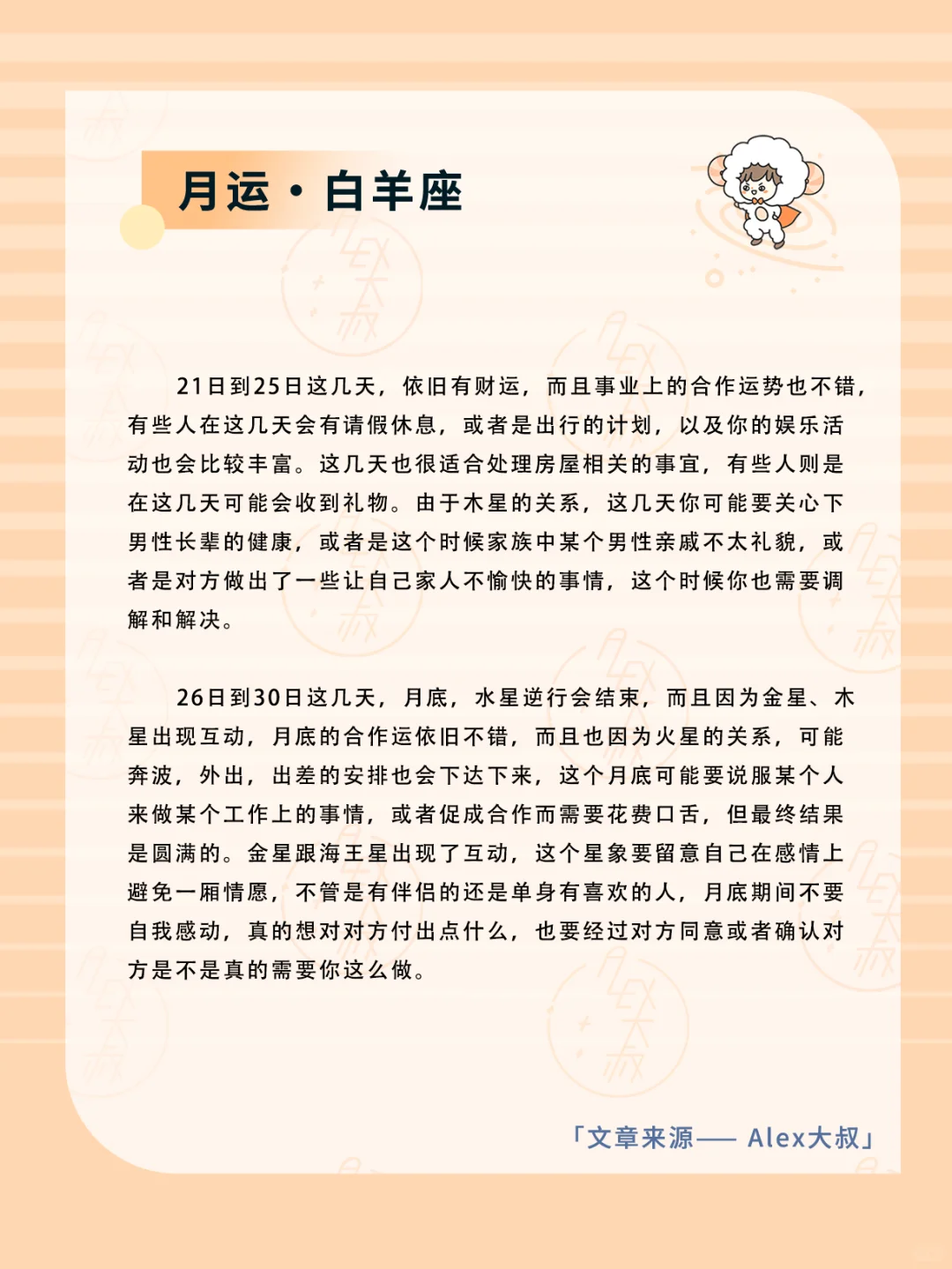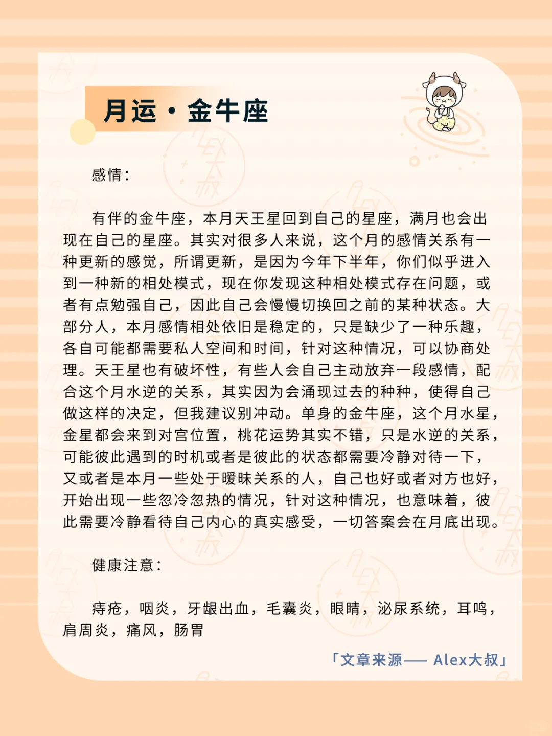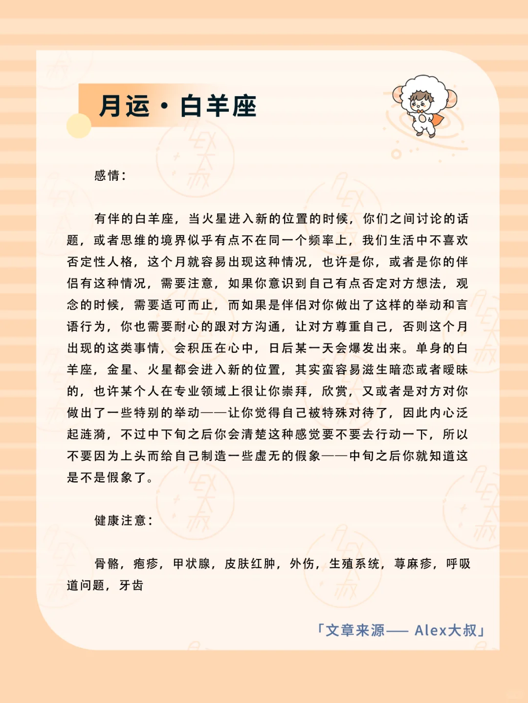 ALEX大叔 我的星座 星座运势 白羊座运势 金牛座运势