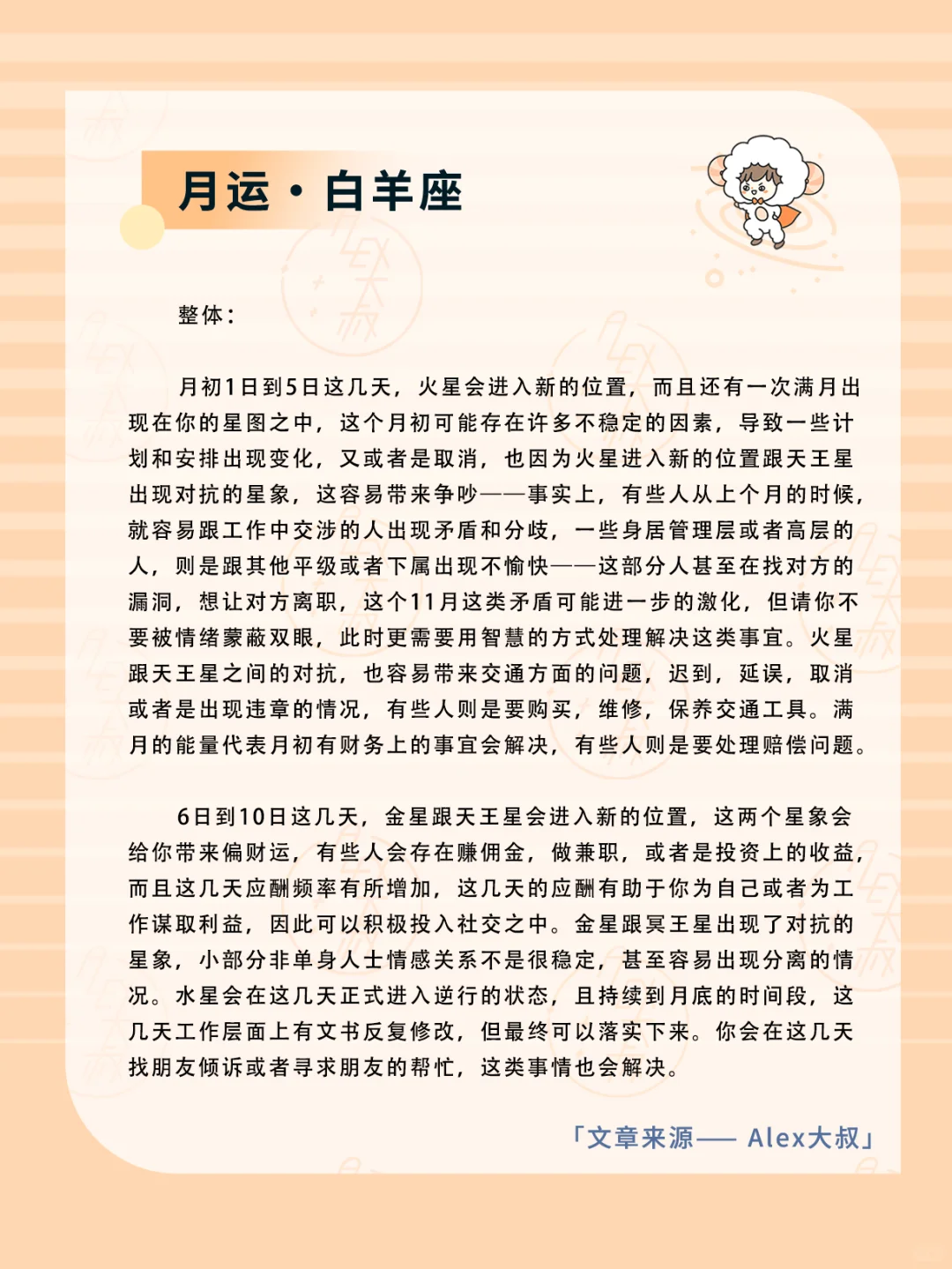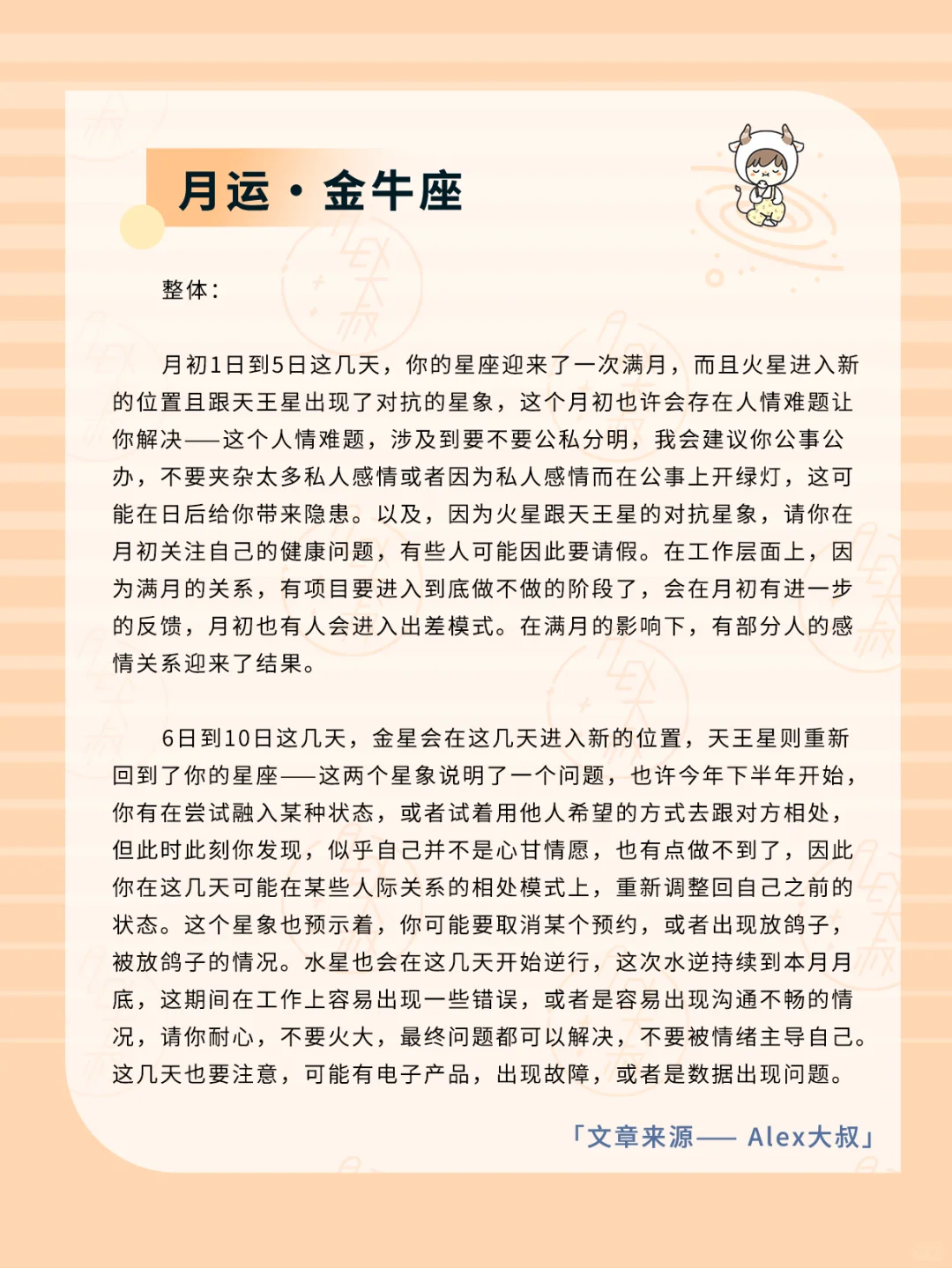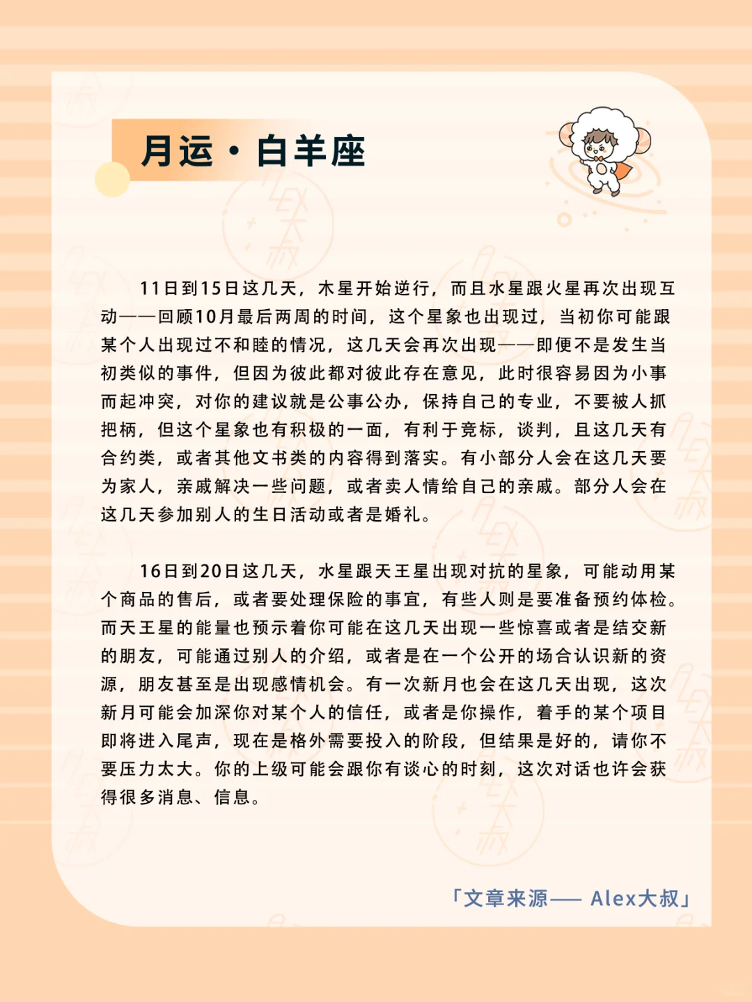 ALEX大叔 我的星座 星座运势 白羊座运势 金牛座运势