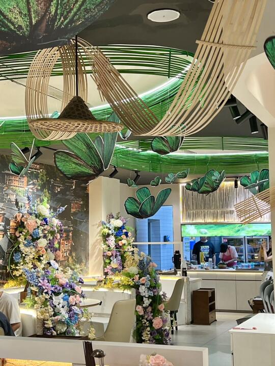 沉浸式用餐体验感满分💯环境氛围超级绝 集美学空间与山野风味于一体!! 随手拍都是大片!! 菜品丰富 性价比高 真的没踩雷~ ✔️厚切现抓牛肉 肉质紧实有弹性 咀嚼时能感受到肉纤维的细腻 汁水饱满 鲜味在舌尖散开🤤 ✔️山野菌菇拼盘 各种菌菇吃到爽😋脆嫩爽口 柔韧有嚼劲 整体散发着山野的清香和独特的菌菇鲜美! ✔️黑米糍粑 外皮酥脆 内里软糯粘牙 黑米的香气浓郁💯口感丰富而有层次 ✔️炸三宝 折耳根外酥里脆 味道特别✨桑叶口感酥松 清香甘甜🍃软哨外皮酥脆 内里肉质鲜嫩多汁