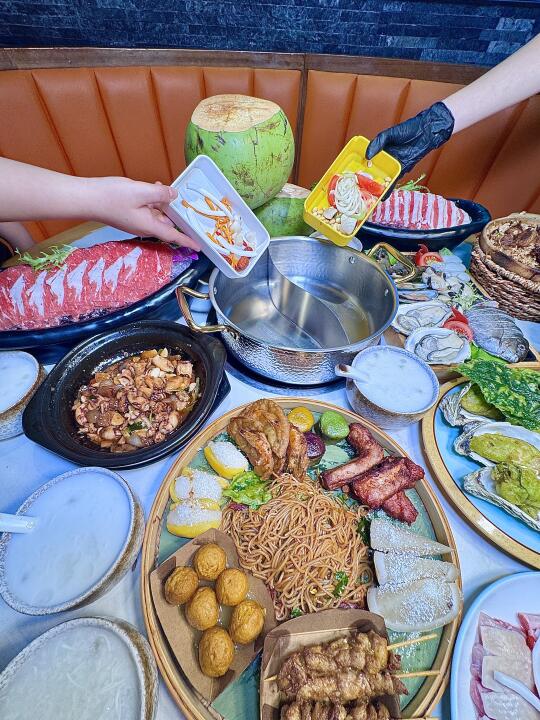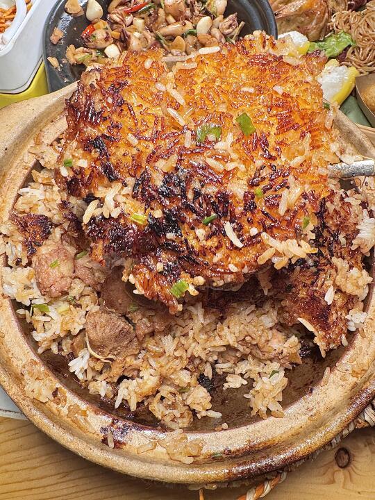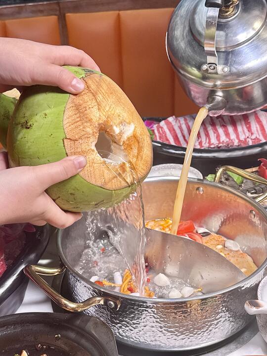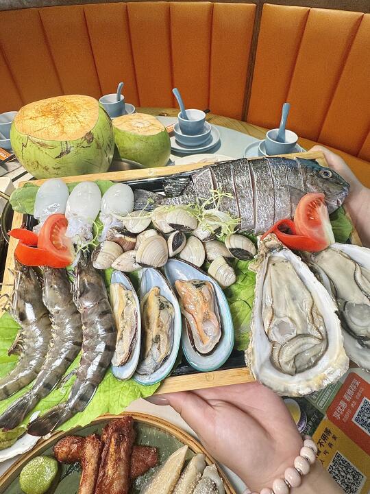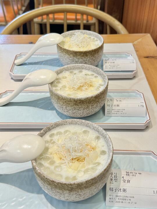 真的是太美味啦😋椰子鸡 + 糟粕醋双拼!! 可以反反复复吃的程度了!!! 现砍椰青🥥椰子水做汤底!好喝上头 文昌鸡🐔肉鲜嫩 一点也不柴👍🏻👍🏻 ✅海南簸箕小吃 一次可以吃到不同口味的食物!很地道! ✅斑斓炸生蚝 金黄的炸衣裹着肥美的生蚝,斑斓叶酥脆可口🤤别有一番风味 ✅干啫排骨焖饭 砂煲内的米粒吸饱了排骨的油润,每一口都是油脂与米香的狂欢😋咸香过瘾!!太好吃啦 ✅椰子冻 清凉的椰子冻如凝固的月光,椰香在唇间化作涓涓细流💯入口清甜柔滑,好吃爱吃! 🥢咩咩椰子鸡糟粕醋·老海南饭馆