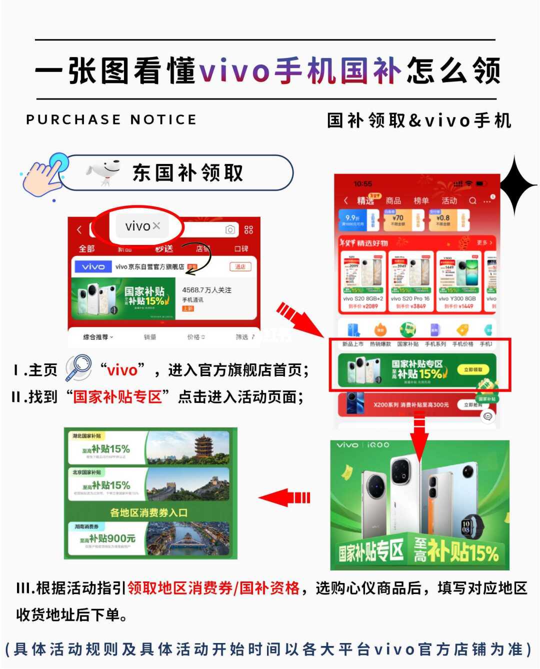 上各大电商平台🔎【vivo】到官方旗舰店首页或上vivo官网进入首页,进入“国家补贴专区”领取补贴