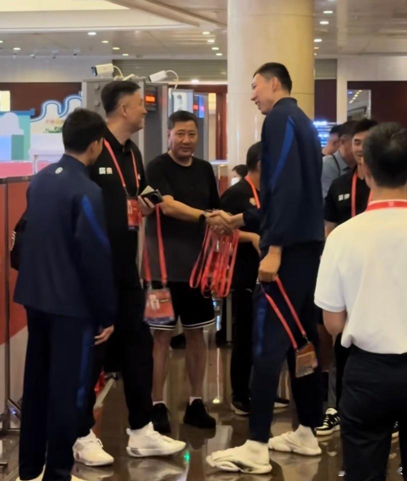 老友相见!胡明轩和杜锋指导在酒店遇到周琦啦,是不是在吐槽番薯头的新发型哈哈[嘻嘻]