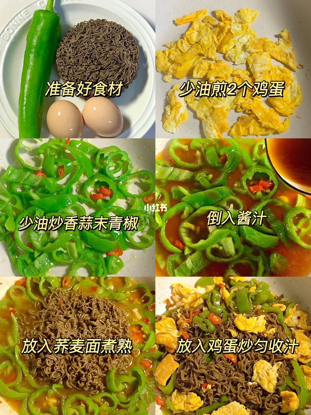 今天分享巨巨巨好吃鸡蛋青椒拌荞麦面!好吃到尖叫!!香辣过瘾!酱汁浓郁!面条裹满了酱汁超级入味~太香啦!!配上鸡蛋和青椒,特别过瘾解馋😋!! 低卡低脂,建议减脂的姐妹们把晚餐换成它!! 食材:鸡蛋 青椒 荞麦面 🫕做法:如图所示~ [飞吻R]酱汁:2勺生抽+1勺蚝油+1勺辣椒面+少许淀粉+半碗多清水拌匀备用
