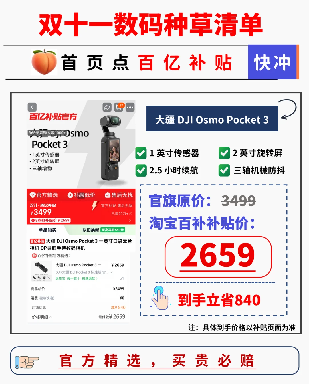 ✅淘宝原价 3499r,百补后 2659r 起,立省 840r+