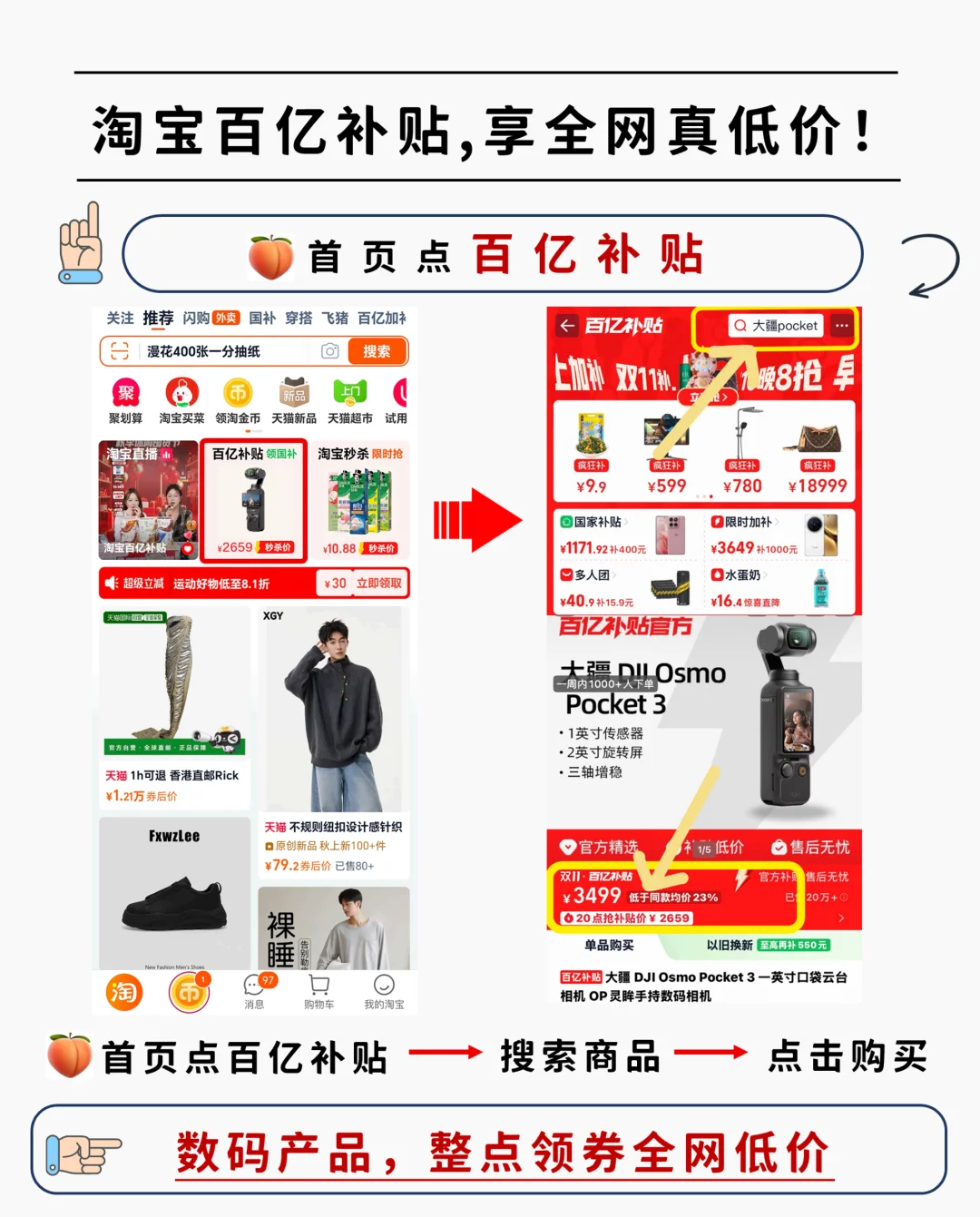 1️⃣打开淘宝 APP 首页点击「百亿补贴」