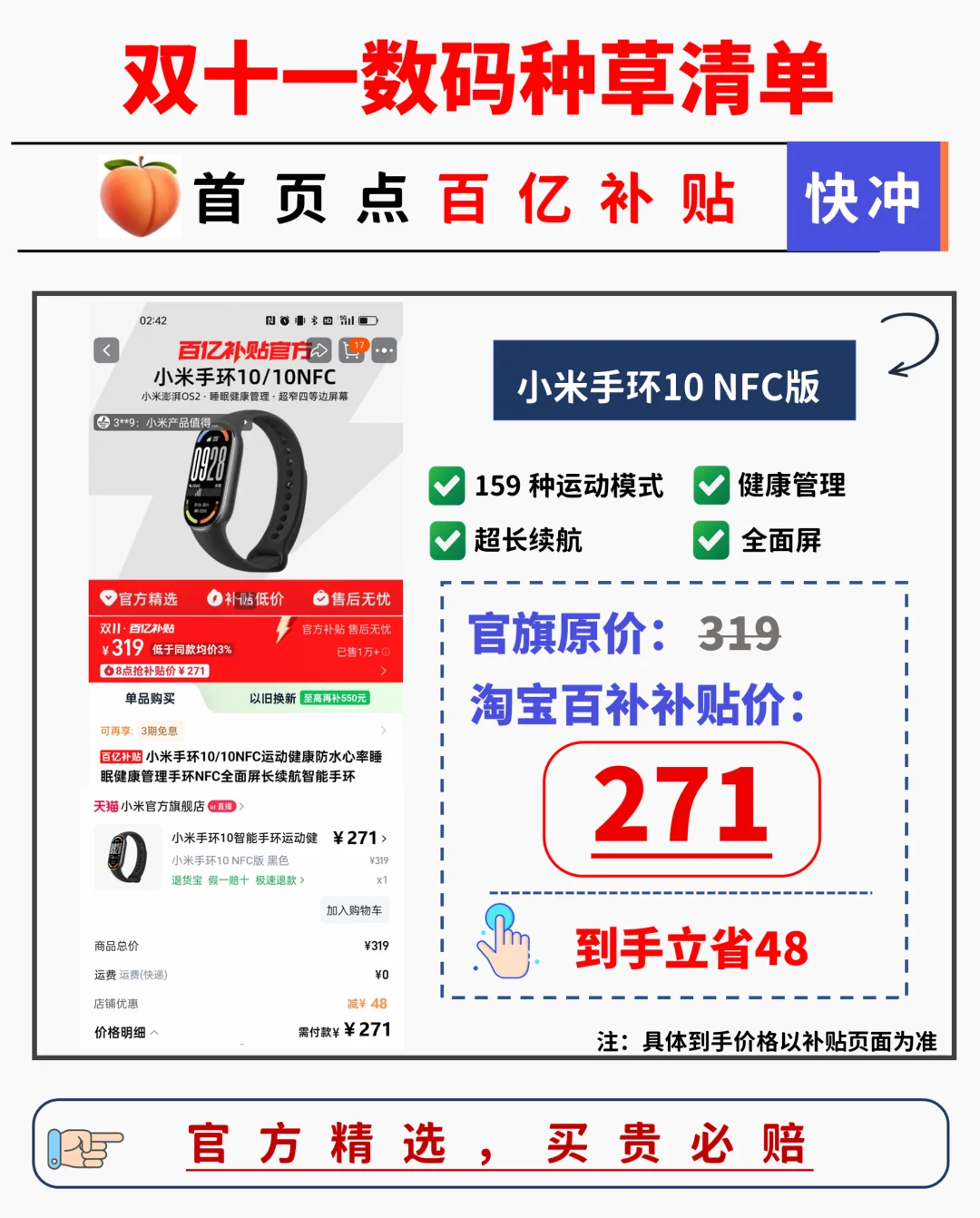 ✅淘宝原价 319r,百补后 271r 起,立省 48r+