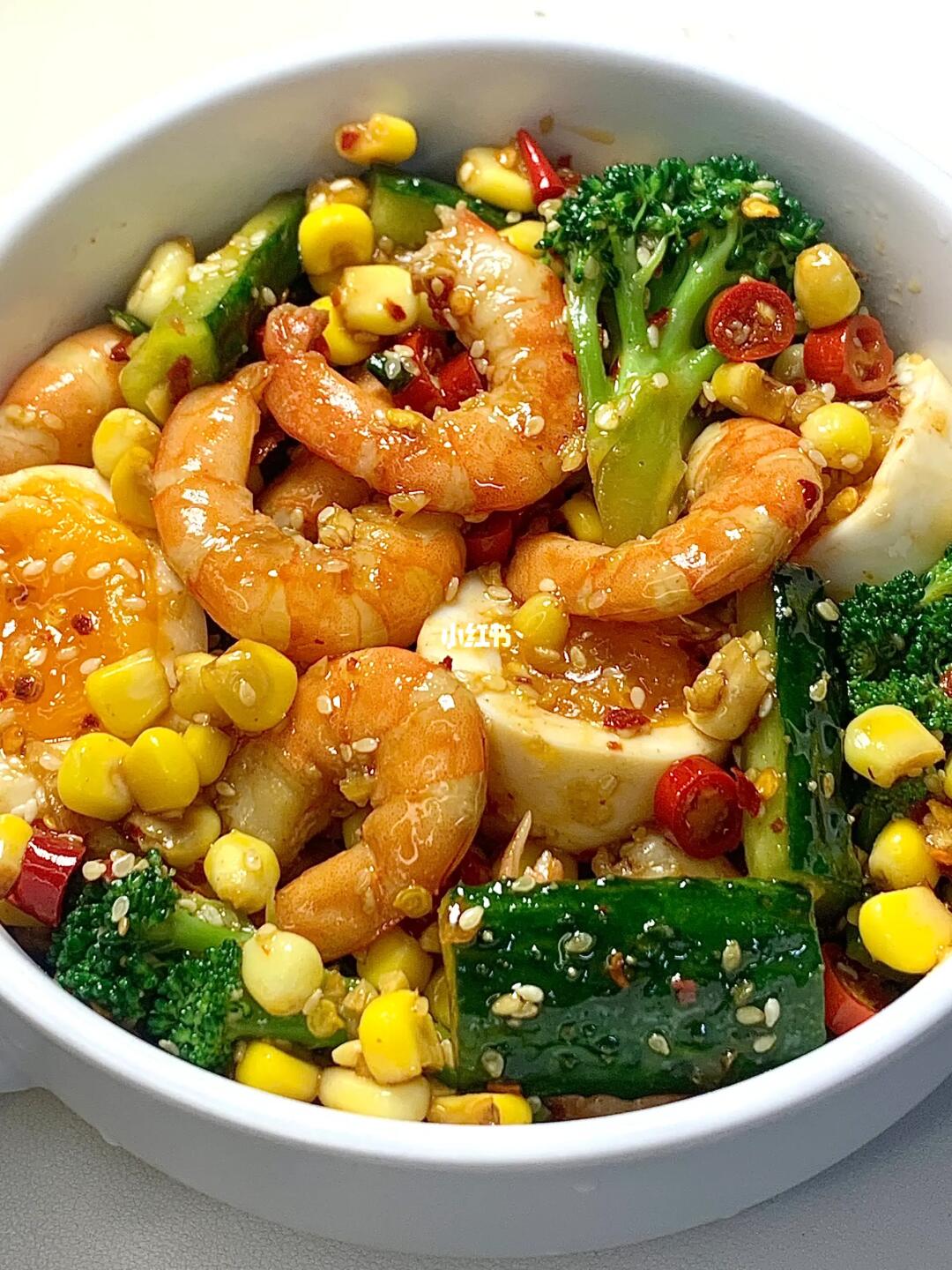 啊啊啊啊,低脂凉拌菜真绝太好吃啦! 黄瓜刮油爽口 虾仁富含蛋白质 甜脆的玉米饱腹的鸡蛋 啊啊啊绝配!!欢喜的姐妹们赶紧安排上[派对R] 💫调一碗灵魂酱汁 小米辣➕蒜未➕白芝麻➕辣椒面,热油爆香。 再加入一勺香醋➕一勺老抽➕一勺蚝油➕一勺纯生酱油 少许凉白开拌匀备用。 💫鸡蛋煮熟、玉米剥开焯水、黄瓜拍一下切段、虾煮熟。再倒入酱汁,搅一搅拌一拌! 酱油用的是爷爷的农场 有机纯生酱油,配料表干净!浓郁醇厚!鲜咸适宜!适合追求健康饮食的宝子们!