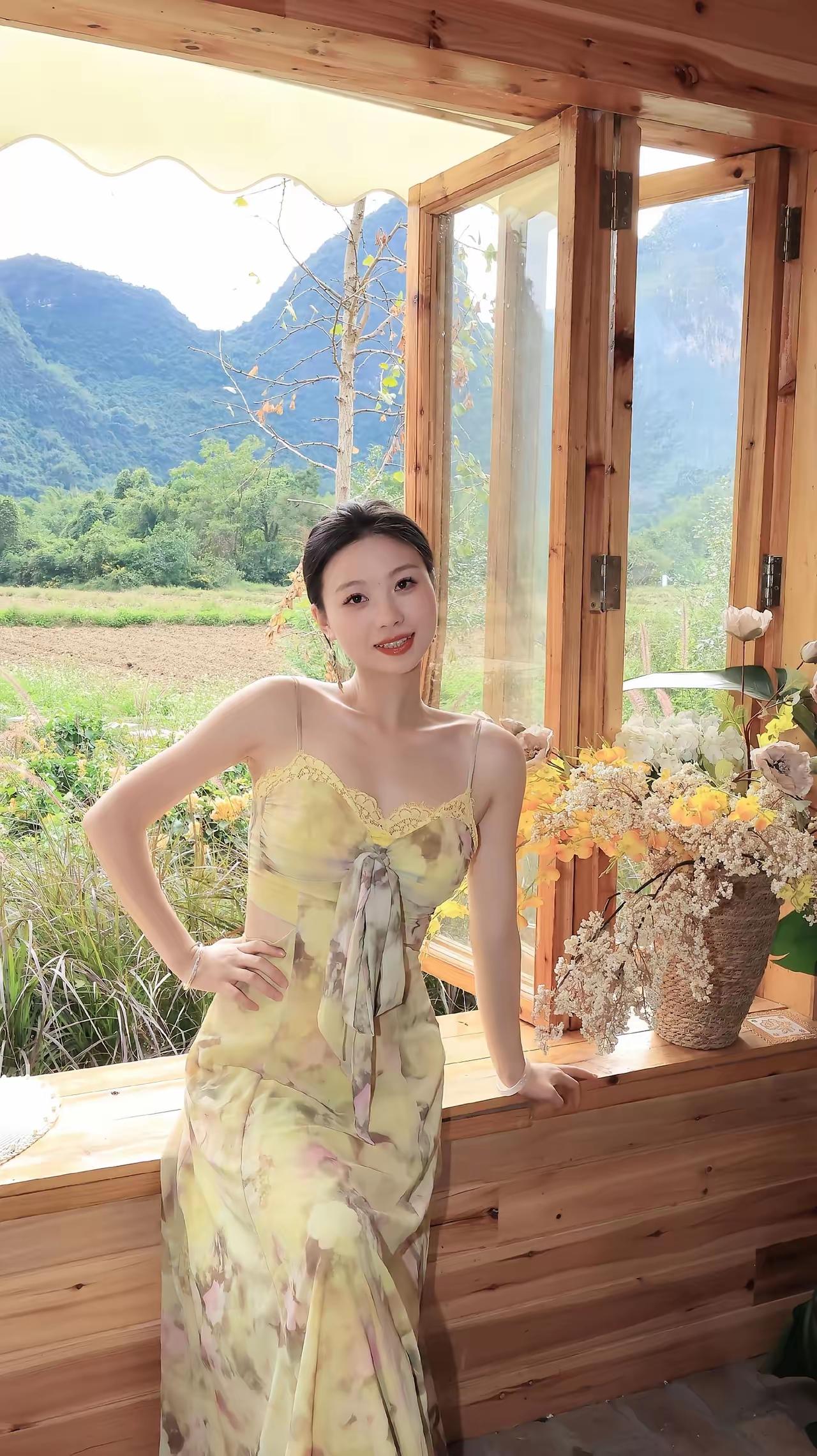 美图欣赏,看图写诗《湖畔佳人》黑裙湖畔立,树影共清姿。露肩风华展,长