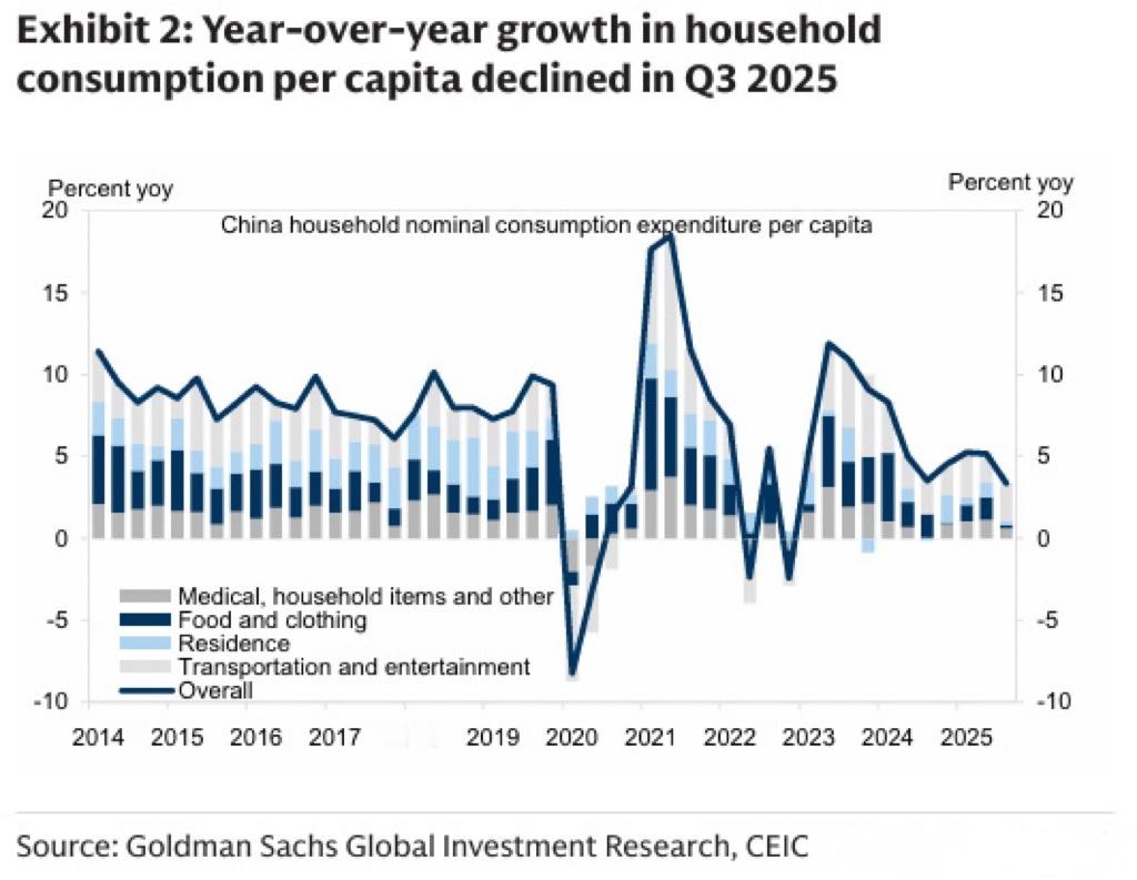 高盛:三季度家庭可支配收入与人均家庭消费增速放缓