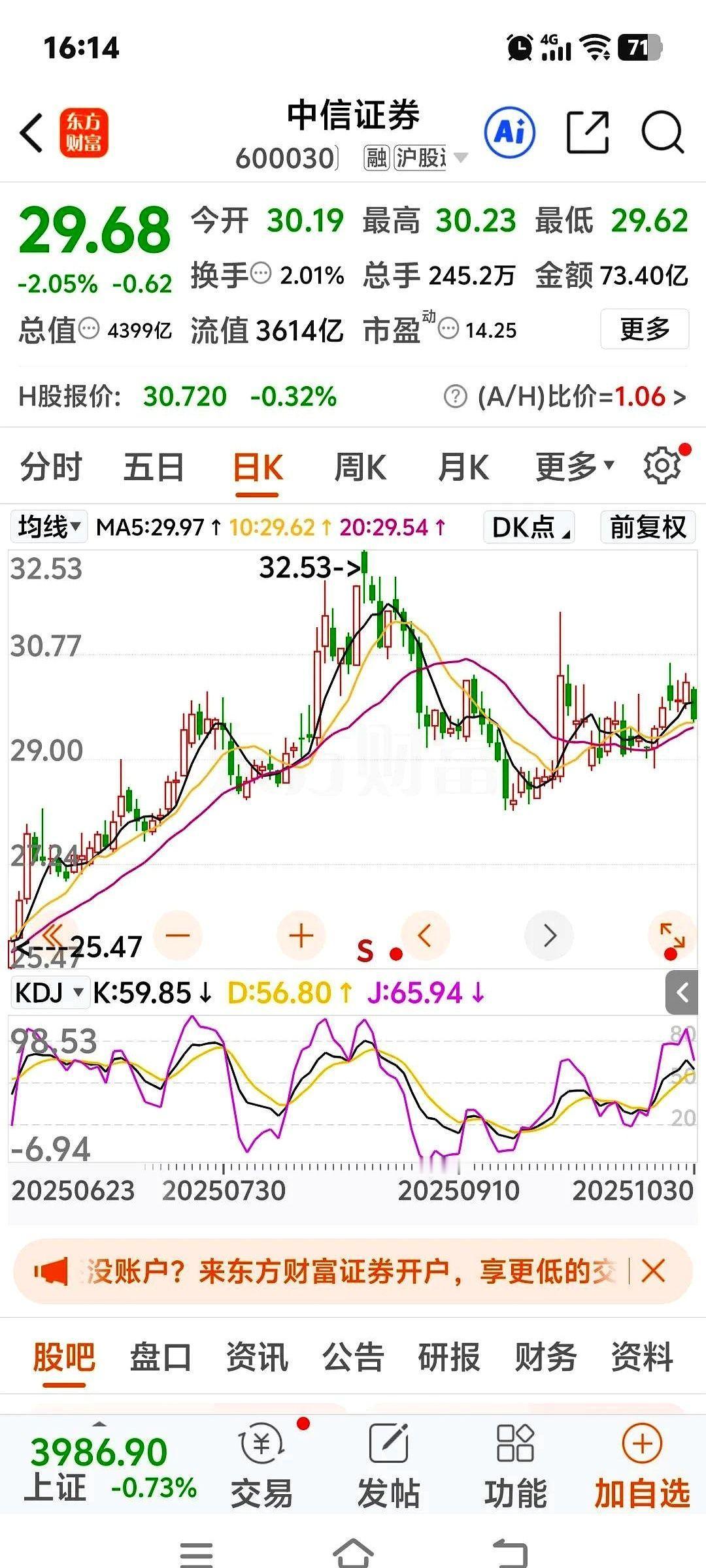 总有那么一帮人,跑得比谁都快。 今天盘面绿得发慌,中信和东财,昨天还看着像要冲锋的将军,今天扭头就往回跑。那K线,一根大阴柱子砸下来,心尖儿上都得跟着颤一下。 说好的日线金叉呢?技术指标不是说得好好的吗? 结果呢,人家在120分钟线上早就给你画了个死叉,提前打招呼了。 最逗的是成交量,缩了。 买的人少,卖的人多。这不就是明摆着告诉你:嘿,哥们儿,我们先走了,你们随意。 这帮“聪明钱”,太贼了。 每次都是这样,吃完最肥的肉,连骨头带汤都不想给你剩下。留下我们一帮小散户,站在山顶上,对着K线图发呆,开始琢磨人生。 这到底是技术性调整,洗掉不坚定的?还是人家真的出货跑路了? 谁知道呢。 有人说,短线就跑,长线就卧倒。 话说得轻巧。长线是金,可短线的疼,是真疼啊。眼睁睁看着账户里的数字往下掉,谁心里不哆嗦。 说白了,这不就是一场赌局么。 赌那些跑了的“聪明人”,明天会后悔,会回来抬轿子。 赌它跌下去的,还能再涨回来。 唉,不看了,睡觉。 明天又是新的一天,新的开盘。