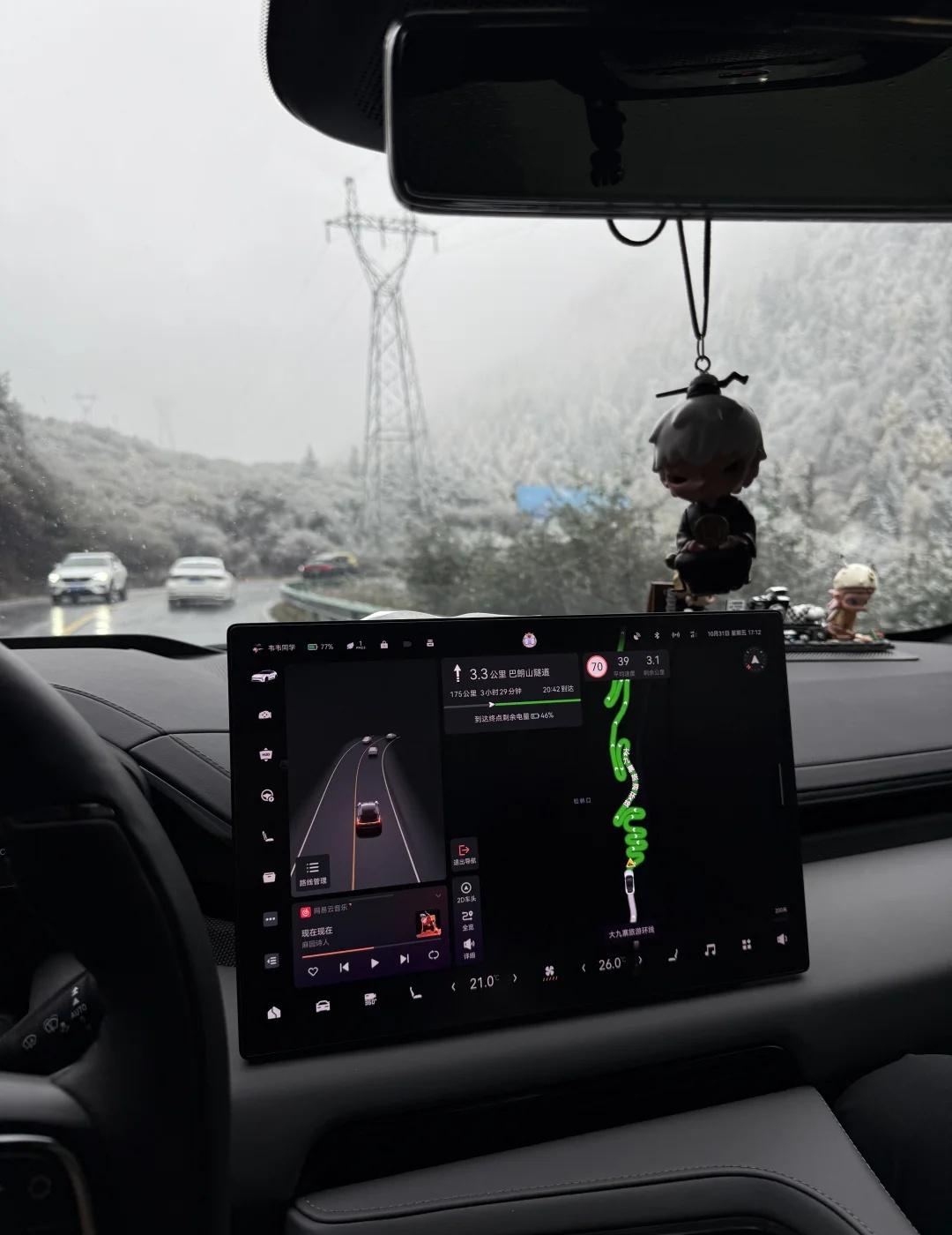 去理小路 临时起意跟朋友邀约出门自驾放风 在小骗书看了很多攻略后 决定去跑跑理小路逆时针环线看看彩林雪山 算好了闹钟 算好了路线 没算好天气 说去赌一把 结果全程几乎大雪云雾 所以总体来说今天的踩线行程属于 去了但又没完全去的状态 简单复盘写个流水账总结 看能不能帮到最近要去的朋友 📍成都-理县 (小雨多雾 车不多) 📍古尔沟-理小路 (山下飘雨 山上大雪 山上注意减速) 📍理小路全程(大雪 部分路面暗冰 没用到防滑链 路边乱停车 人多) 📍理小路-熊猫王国环线 (小雨 车多 单向车道 有卡车 牛群) 📍巴郎山-成都(山上大雪起雾 能见度低 路面湿滑 下山晚 开夜车 大车多) 早上7:00出发 晚上21:00回成都 全程600km+ 耗时12h+ 其中午饭1h 充电2次 1.5h ⚠️tips: 户外活动要注意防风防雨防寒 小伙伴就是在车外玩耍拍照没注意 下山的时候出现高反症状了 一路痛苦面具回成都 2025.10.31 zeekr 极氪001 川西自驾 理小路