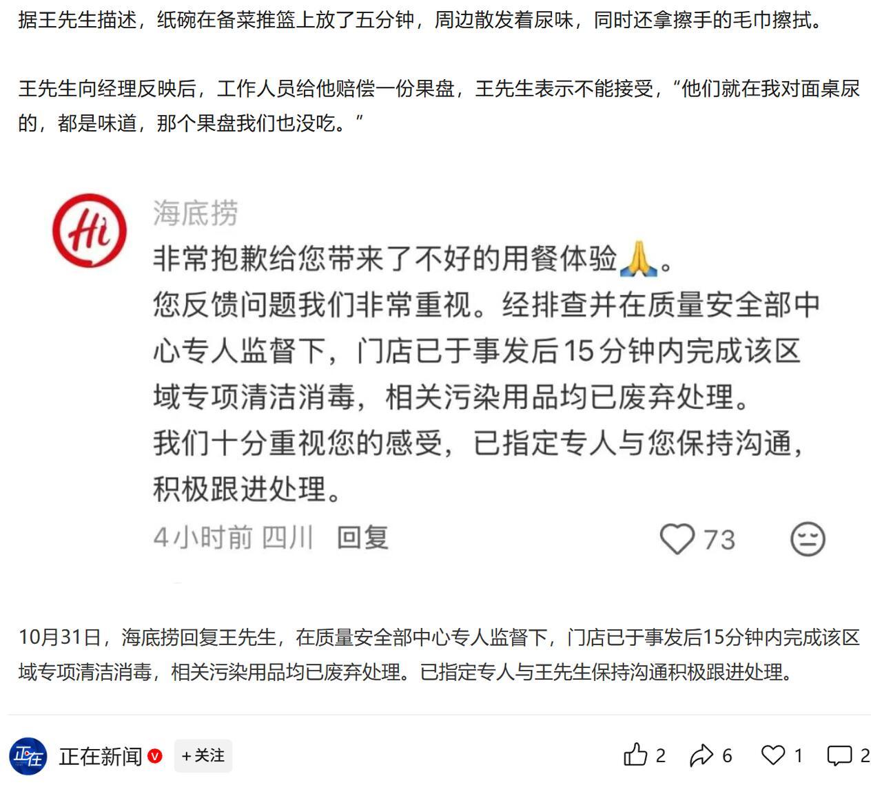 这事儿真是绝了——前两天在哈尔滨一家海底捞,有个家长居然拿店里的纸碗给孩子接尿。 当时旁边桌的顾客都看傻了。孩子说要上厕所,当妈的直接抱起孩子,拿个纸碗就在餐区接尿,接完还把那个尿碗放在备菜推车上整整五分钟。周围一股味儿,这家长甚至还拿擦手毛巾给孩子擦。 被其他顾客投诉后,店家赔了份果盘。要我说,这果盘谁吃得下啊?想想都膈应。 海底捞后来发声明说已经消毒了,还把被污染的东西都扔了。但说实话,这种事儿光靠事后消毒有什么用?在吃饭的地方接尿,这家长脑子怎么想的? 带孩子出门不容易,大家都理解。但再着急也不能在公共餐区解决啊。海底捞又不是没厕所,就算排队等不及,跟服务员说一声,总能想到办法。拿纸碗接尿还放备餐车上,这操作实在太离谱了。 现在海底捞生意本来就不如以前,上半年营收和利润都在跌。要我说,这种卫生问题要是再多来几次,谁还敢去吃饭?家长是图自己方便了,考虑过其他顾客的感受吗? 真的,有些家长该长点心了。公共场合不是你自己家,不能想干嘛就干嘛。这次是接尿,下次是不是要在火锅里洗尿布了?条友这一周 分享我这周有趣的事: