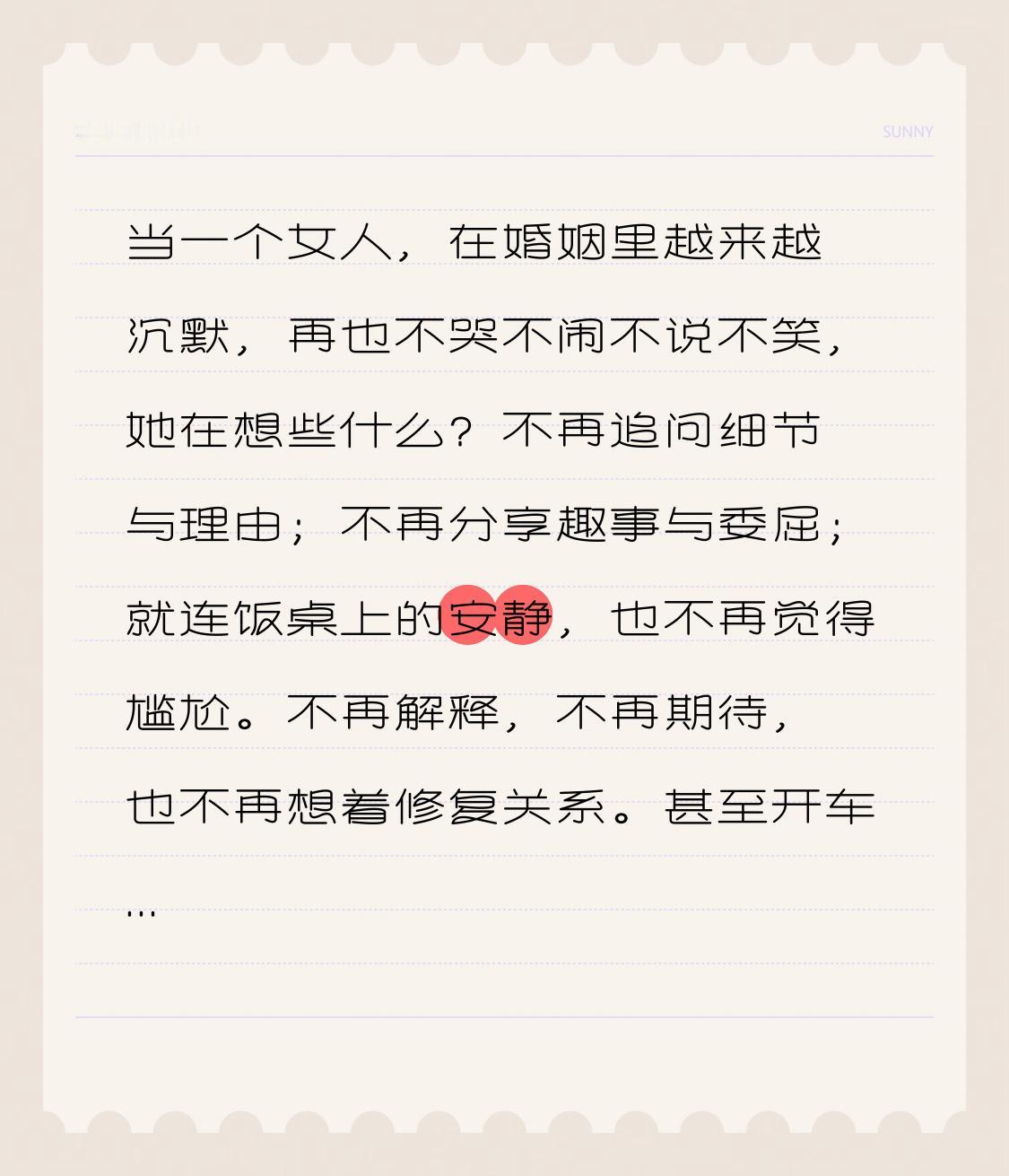 当一个女人 在婚姻里渐渐沉默 不再哭闹,不再谈笑 她的内心究竟在思索些什么? 不再探寻事情的细节与缘由 不再分享生活的趣事与委屈 哪怕饭桌上寂静无声 她也不再觉得尴尬 不再辩解,不再期盼 也不再尝试修复这段关系 哪怕开车出门遭遇碰撞 面对强势的男车主 她独自默默应对 独自去4S店修车 独自到交警队妥善处理 曾经,她笑容明媚 眼中闪耀着光芒 可如今 她连与人争吵的力气都已耗尽 婚姻现实解读 婚姻相处真相 情感婚姻的本质 路灯工厂 离婚女性心理 女性婚姻感悟 离婚女性独白