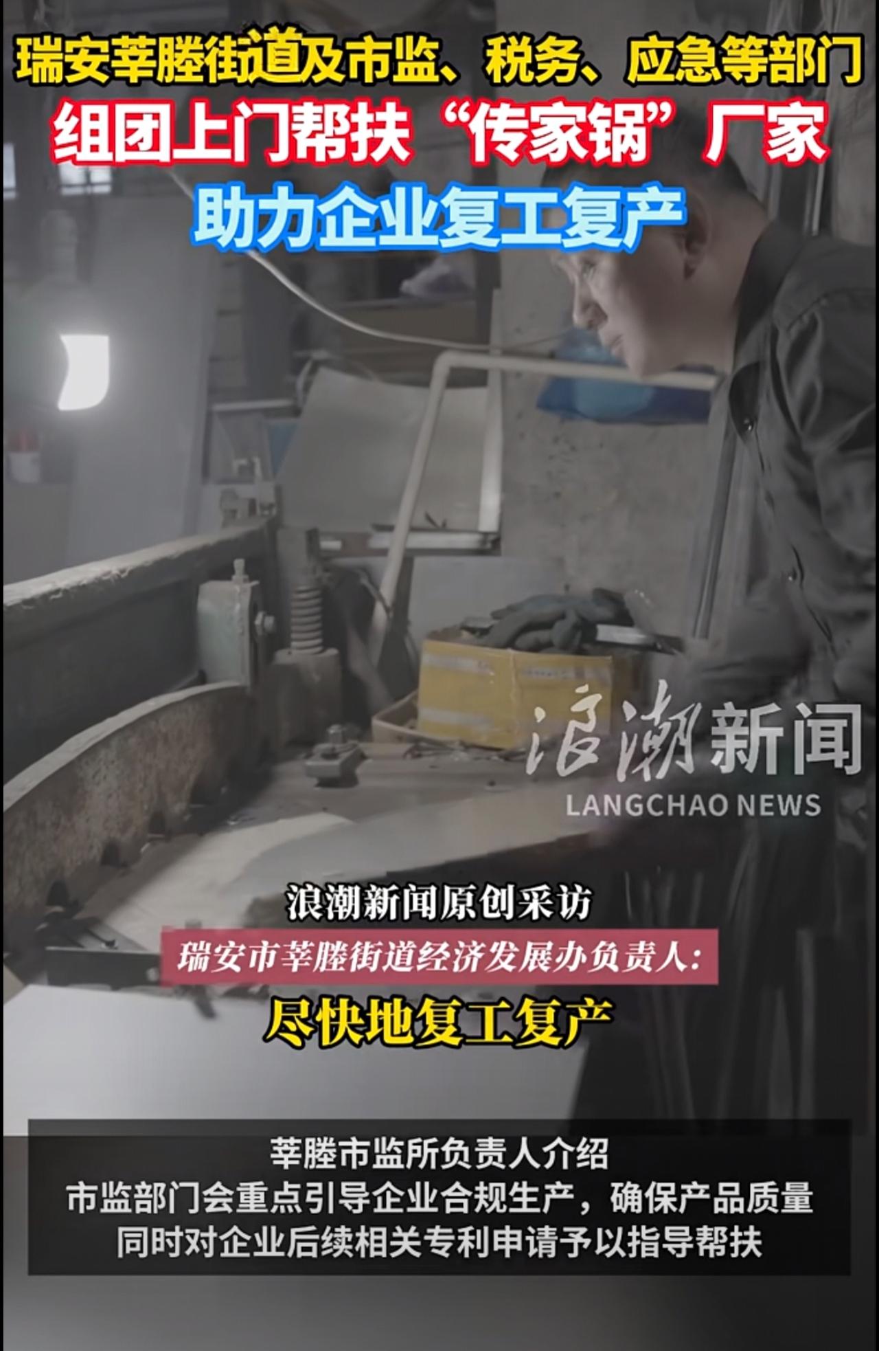 瑞安莘塍街道及市监、税务、应急等部门 组团上门帮扶“传家锅”厂家 助力企业复工复产(记者:谢树华 剪辑:李芳华)