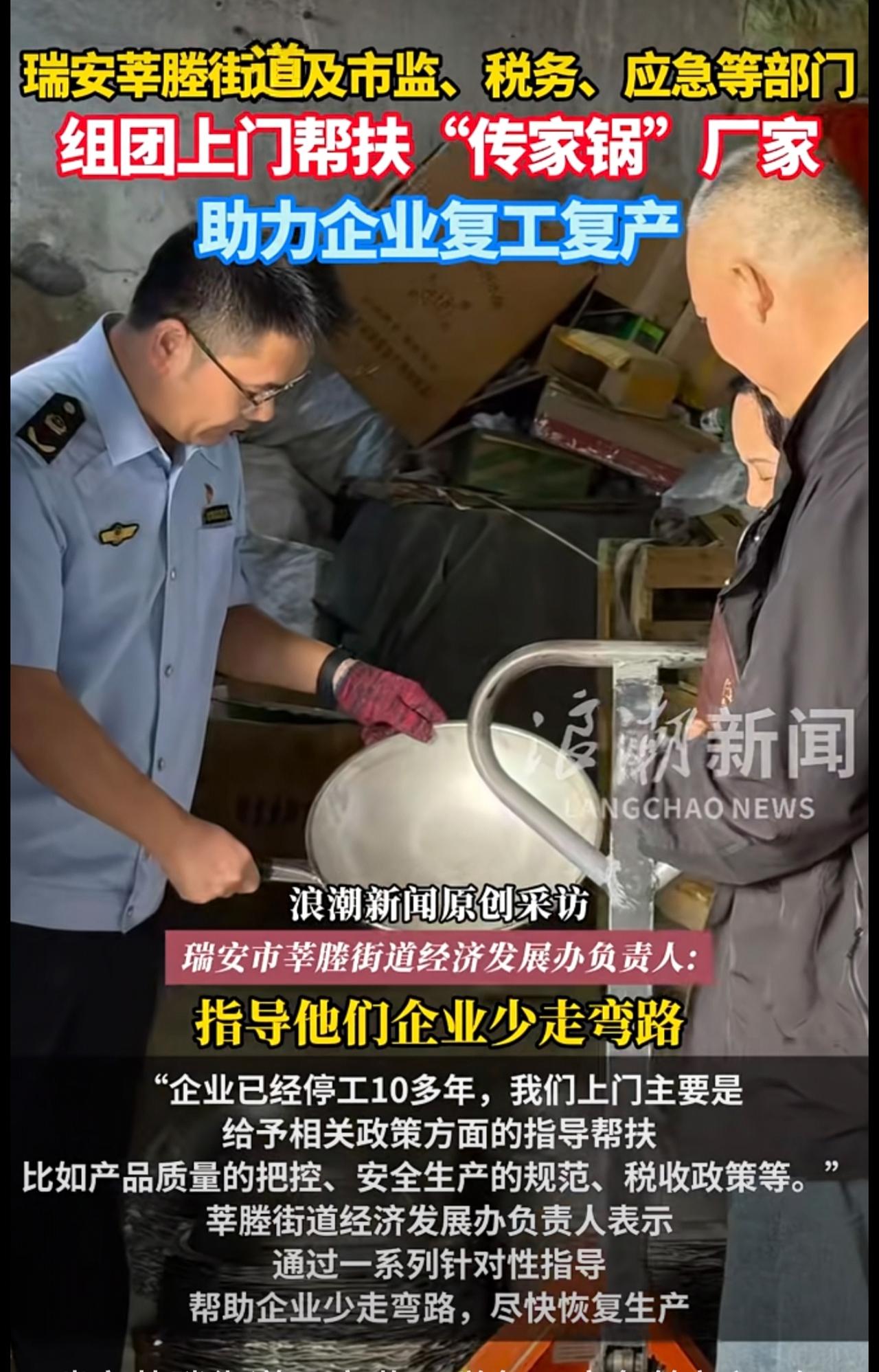 瑞安莘塍街道及市监、税务、应急等部门 组团上门帮扶“传家锅”厂家 助力企业复
