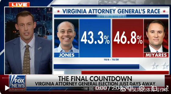 共和党候选人杰森·米亚雷斯(Jason Miyares)领先琼斯3.5个百分点。