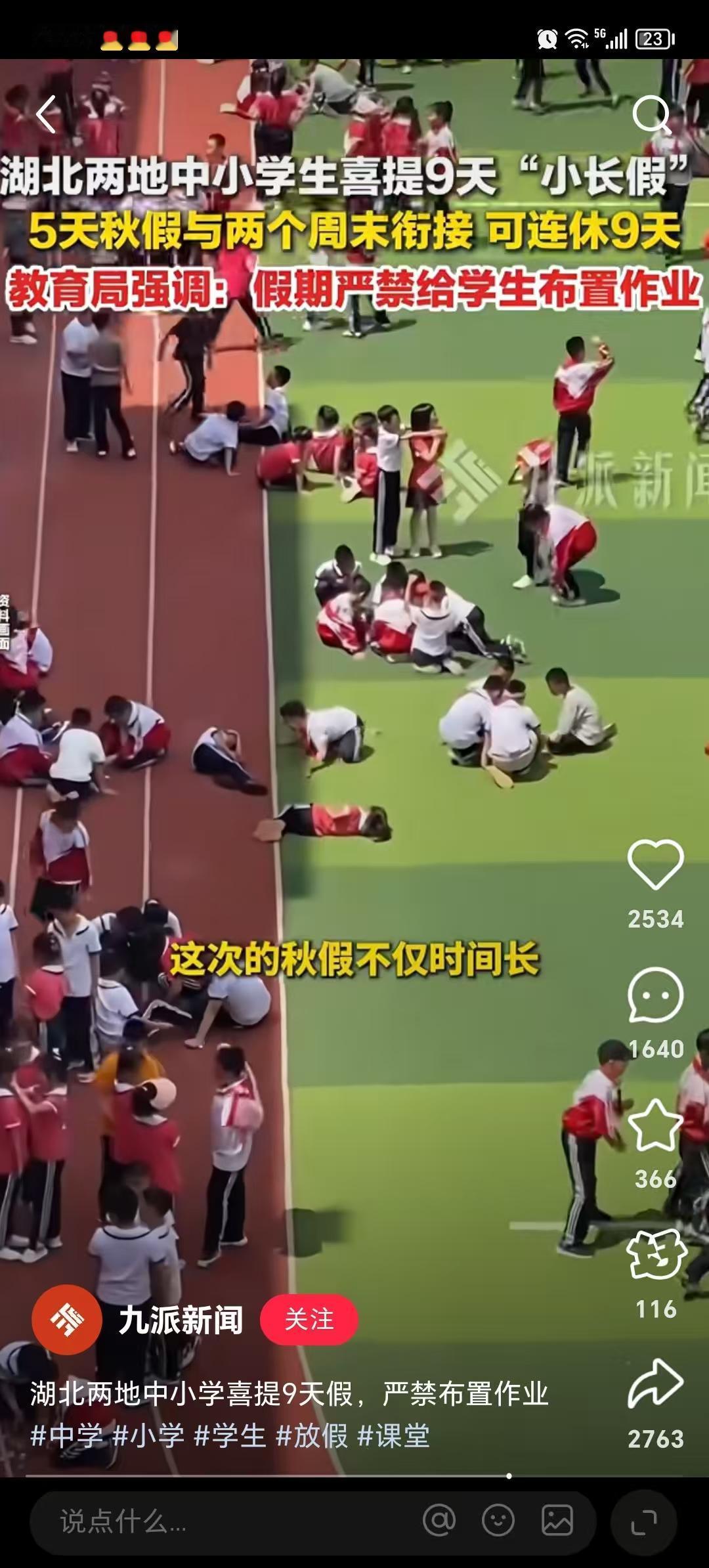 全国的小朋友们羡慕了! 湖北恩施的中小学喜提九天“小长假”!5天秋假与两个周相衔接,连休9天! 不光如此,假期严禁给学生布置作业!秋假时间时间从11月3号到11月7号! 放假就算了,还没作业,这太过分了! 坐标江苏,太羡慕了! 小学生秋假