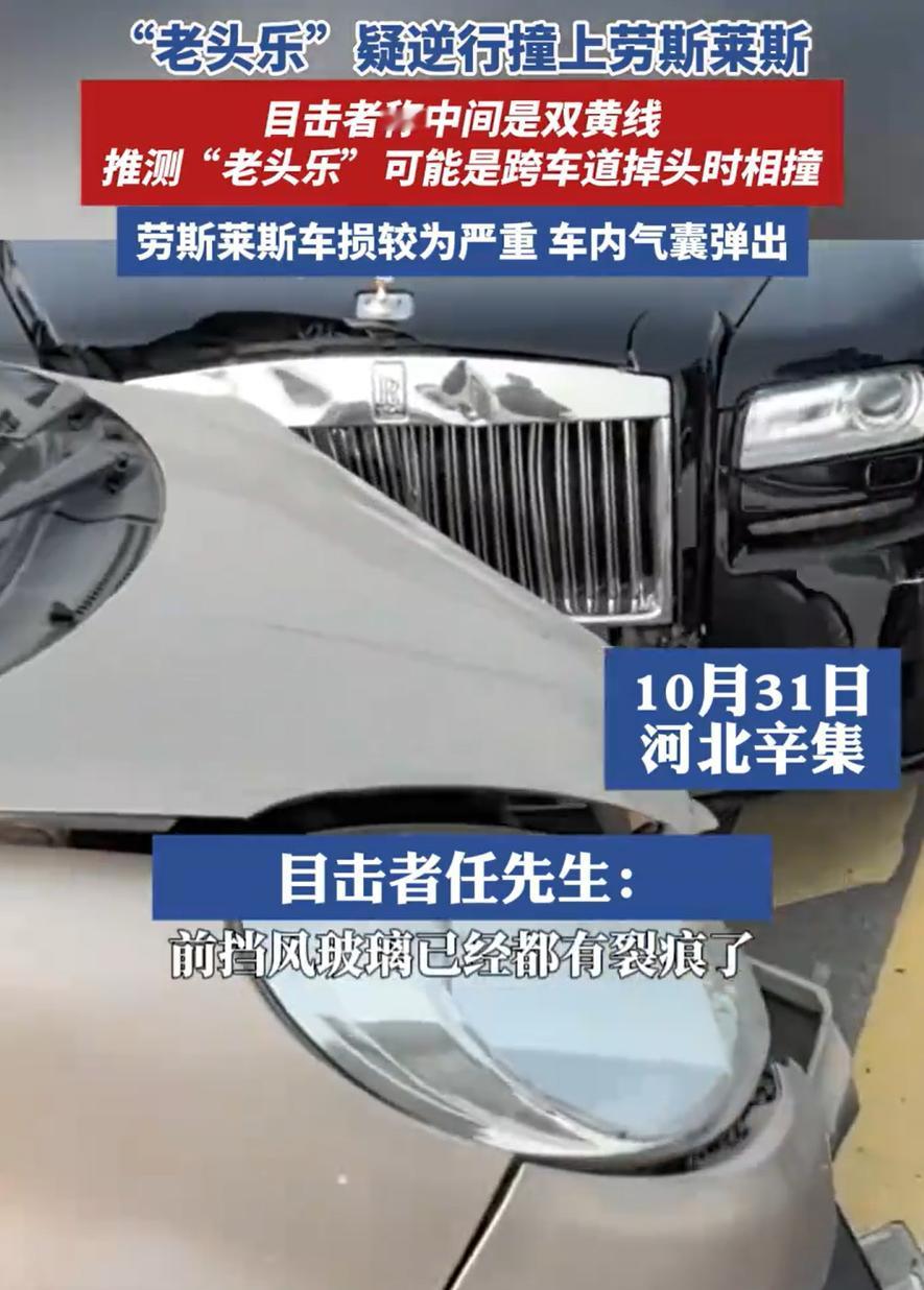 “这下乐不出来了!”河北辛集,一辆老头乐逆行撞上劳斯莱斯,老头乐被撞坏不说,事故还造成劳斯莱斯损毁严重,旁人路过时调侃:这下老头又得干一辈子! 现场画面里,劳斯莱斯的前挡风玻璃裂开,中网凹陷,驾驶室气囊和侧面气帘全部弹出。那辆老头乐也伤得不轻,车头损毁明显。万幸的是,没有人在这场事故中受伤 有网友说:开十万的车老头还能赔得起,开500万的车让老头怎么赔 这话说的不对,而且也经不起推敲。规则面前,这种事故不分车贵车贱,责任怎么划分就怎么赔。该负全责的要赔全责,车价高低只影响维修金额,不影响定责逻辑 劳斯莱斯修得贵,那是因为零件贵、人工贵,跟对方是不是老头、开什么车没关系。赔偿原则是“谁造成谁承担”,而不是“谁有钱谁让着”,双黄线不能压,逆行更是不该 老年代步车的身影在小城小巷里越来越常见。它们不需要驾照,不用上牌,买来就能开上路。可问题是,不少老年人没经过系统驾驶培训,对交通规则一知半解,却开着安全性能远不如正规车辆的老头乐,穿梭在车流中 有人说该禁止老年代步车上路,但这不现实。对许多老年人来说,这是他们接送孙子、买菜购物的腿。关键不是一刀切,而是加强管理:车辆要不要上牌?驾驶员该不该有基础培训和保险?或许这些才是重点
