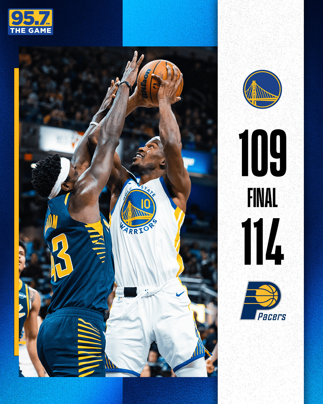 虎扑11月02日讯今日NBA常规赛,步行者对阵勇士的比赛已经结束。步行者最终114-109战胜勇士。