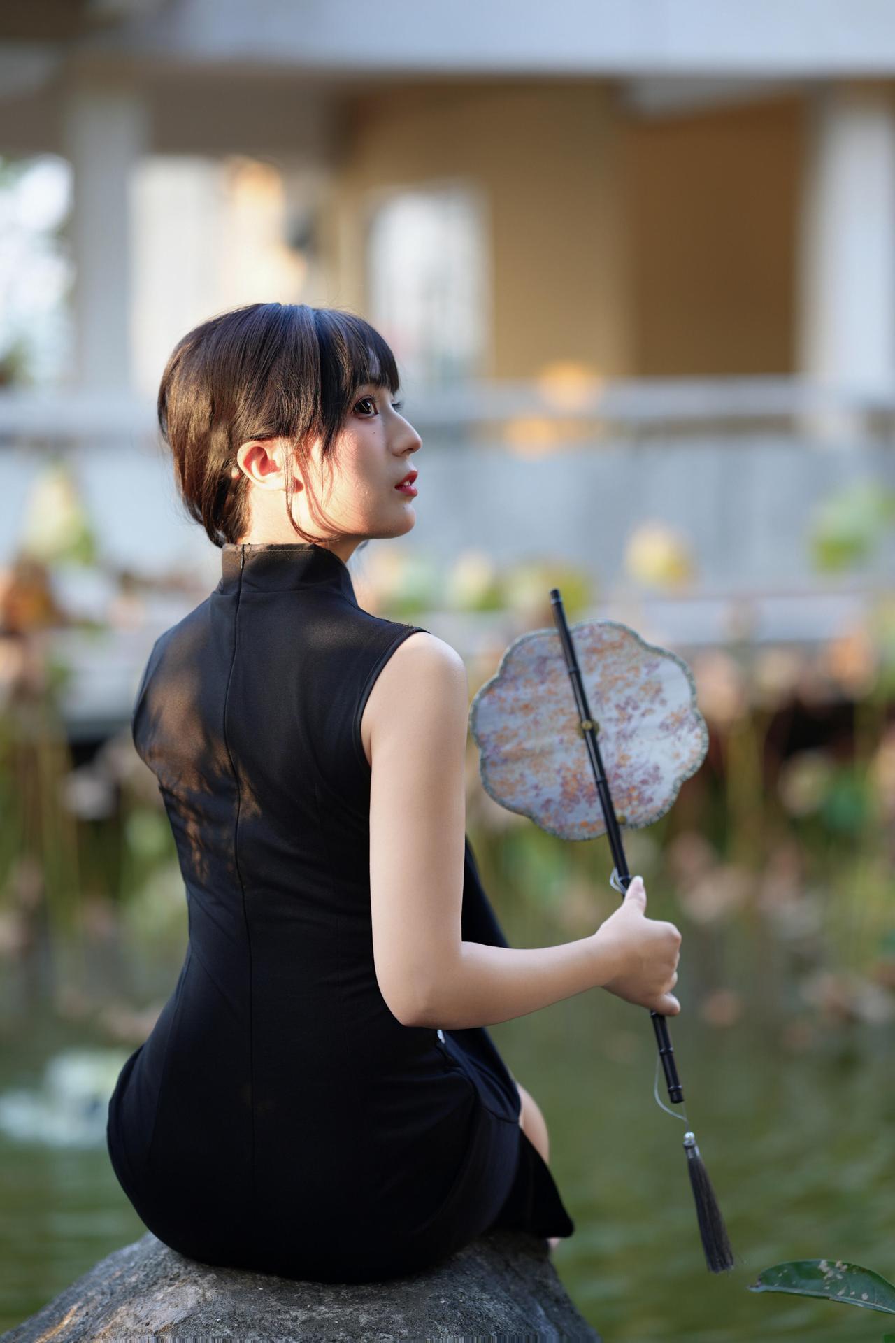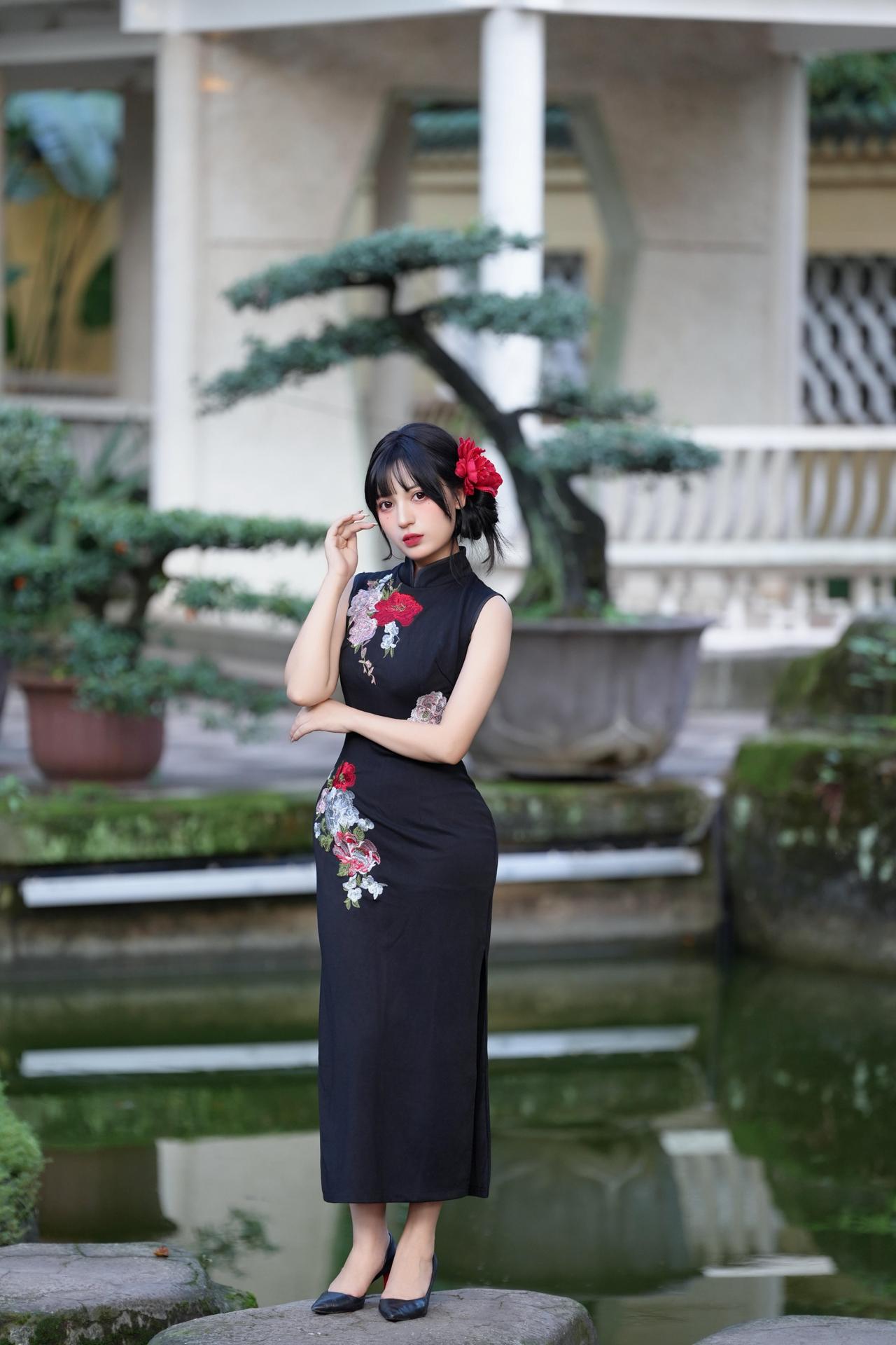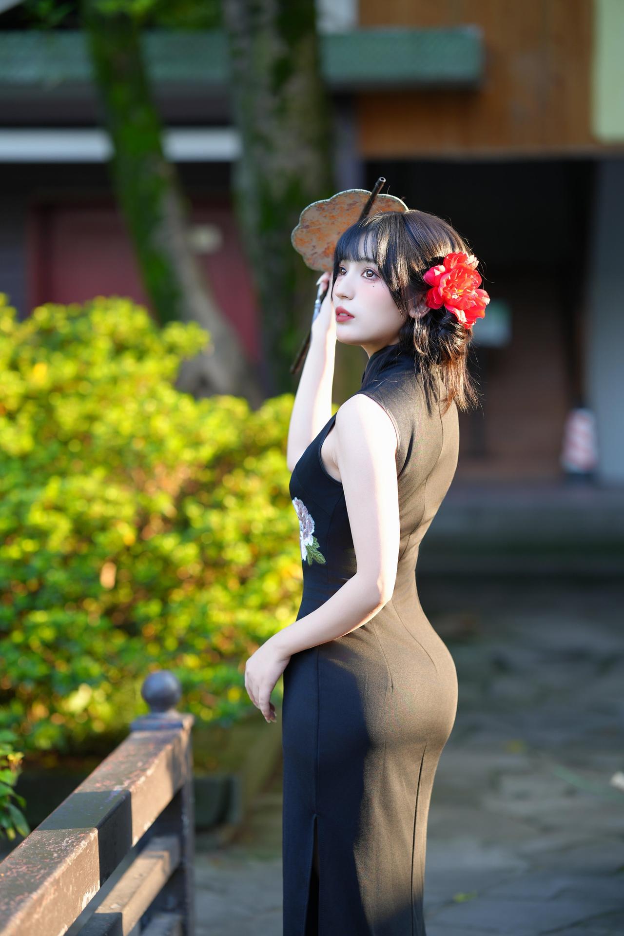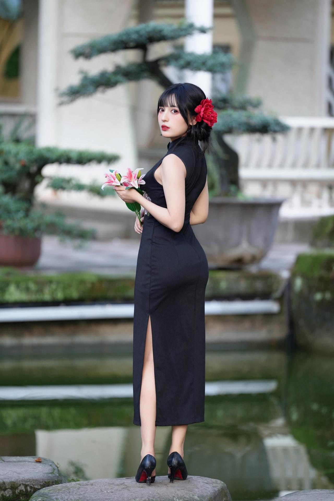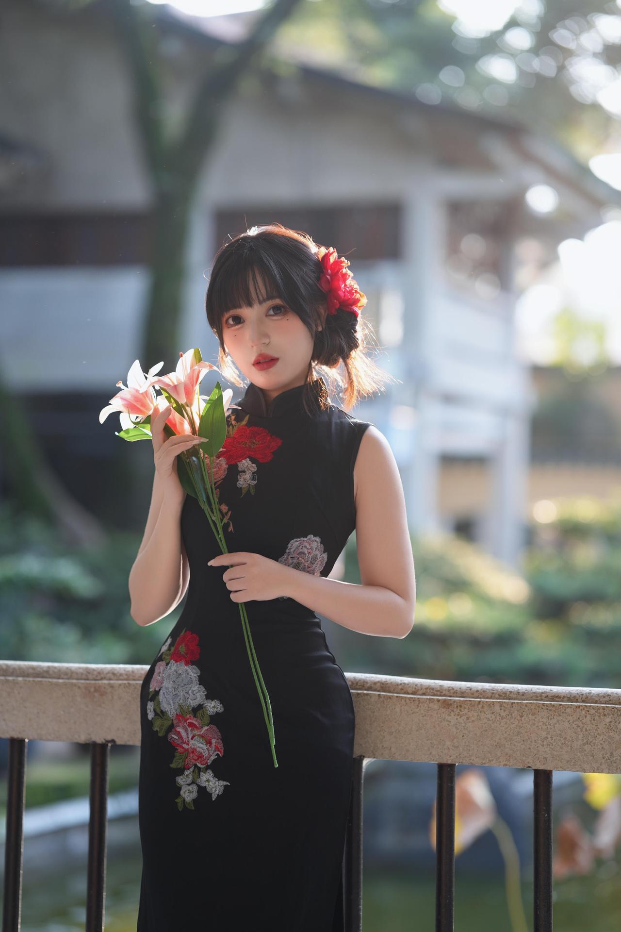 𝓪𝓾𝓽𝓾𝓶 🌾☀️ིྀ 如果旗袍是时光的诗行, 那她便是诗中惊艳的韵脚。 当黑色绣花香云纱掠过江南园林的石径, 当鬓边红花与手中百合相映成趣, 古典与摩登便在此刻相拥。 她执一柄团扇, 在亭台水榭间轻摇, 摇落了岁月的尘埃, 摇来了东方美学的绝响: 原来传统可以如此鲜活, 优雅能够这般炽热, 每一次转身,都是对中式浪漫的深情告白。 ——————————————————— 拍照心得分享: ①在旗袍摄影中,需注重光影营造,利用侧光或逆光勾勒旗袍线条与刺绣细节; ②场景呼应是关键,古典园林的亭台、水墨风布景能强化中式韵味; ③姿态设计要体现旗袍优雅,可借助团扇、花束等道具,让模特以回眸、漫步等动作展现曲线,同时关注面料质感的呈现,让每一处褶皱都诉说复古风情。