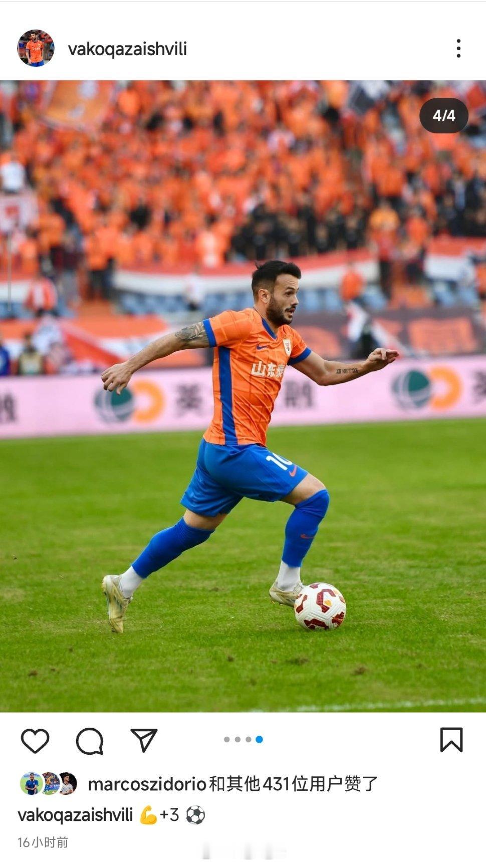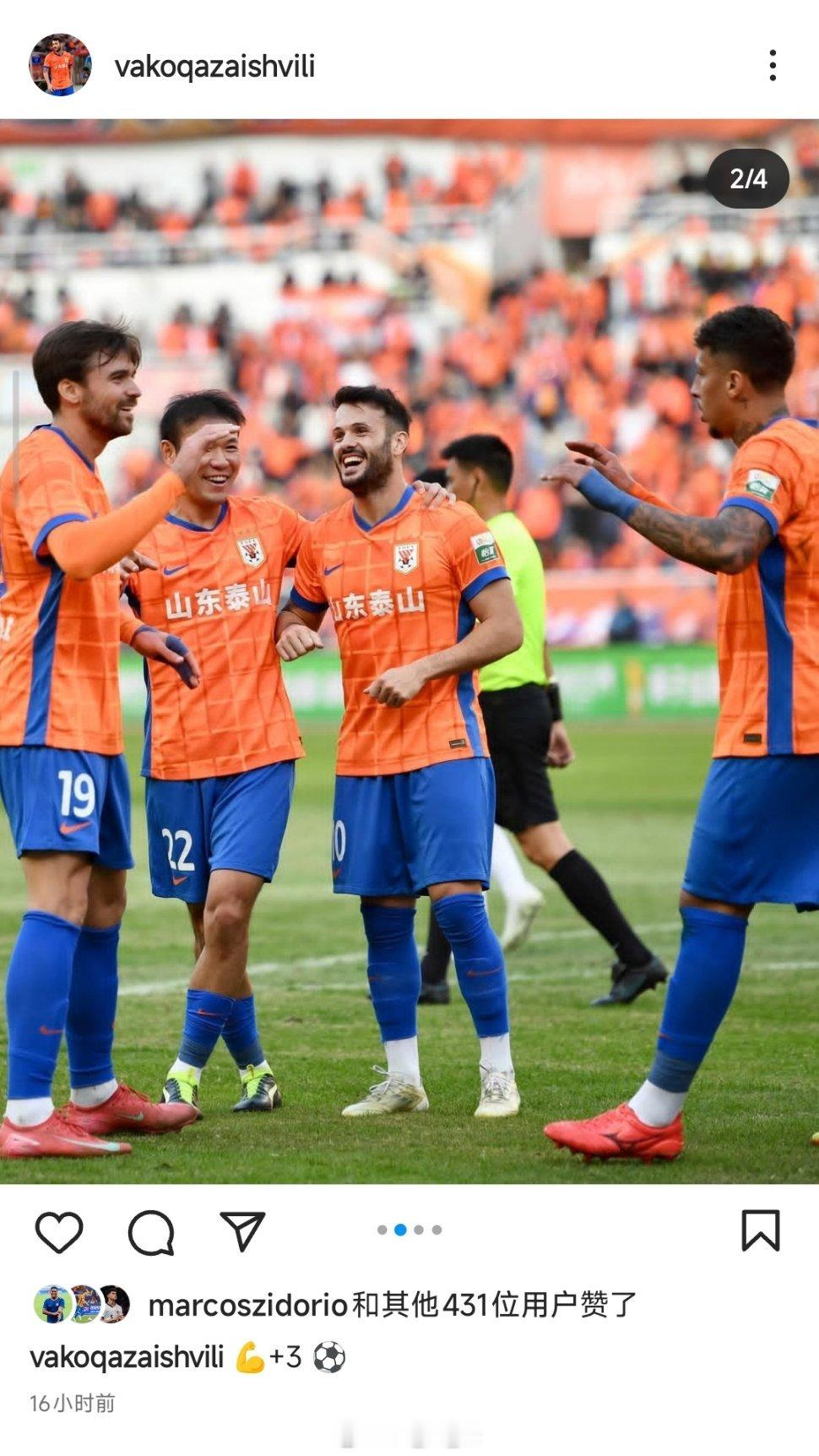 瓦科社媒动态,并配文:[加油]+3⚽自由橙[超话]山东泰山[超话]