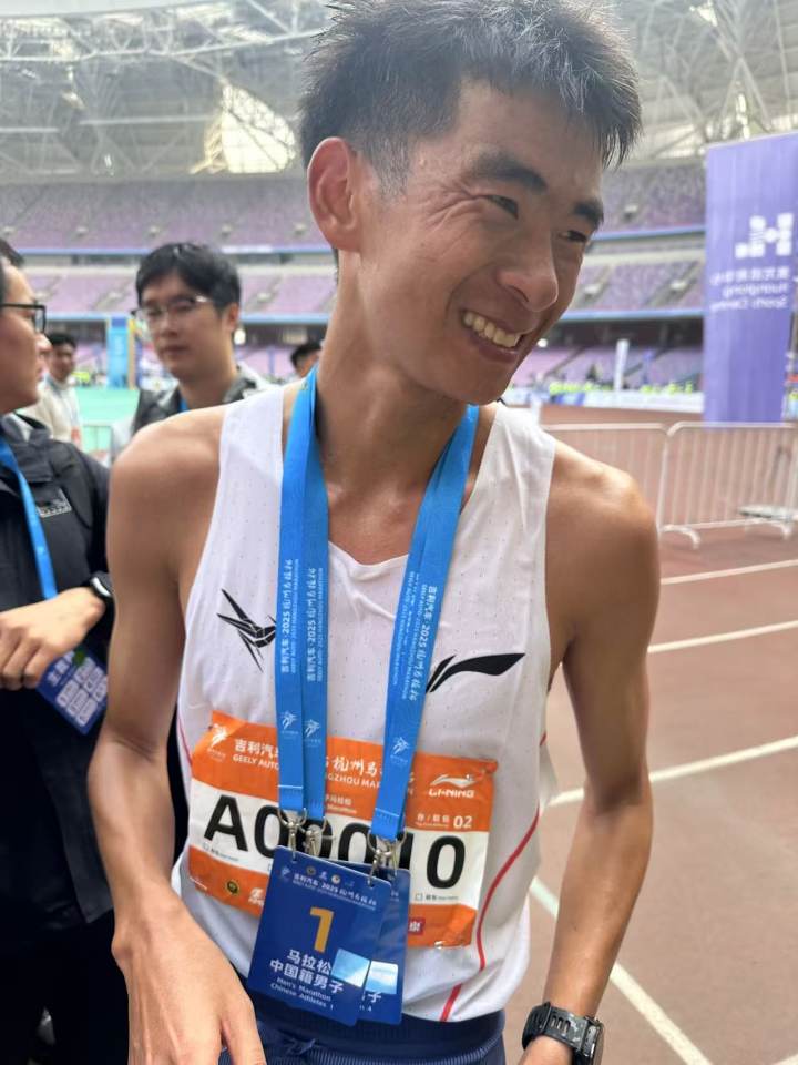 来自云南的赵朝传拿到了全马中国籍男子组第一名,这是他第一次跑杭马,就跑出了个人最好成绩2小时12分54秒,并获得了10万元人民币的中国籍选手第一(2小时13分24秒(不含)以内)奖金。