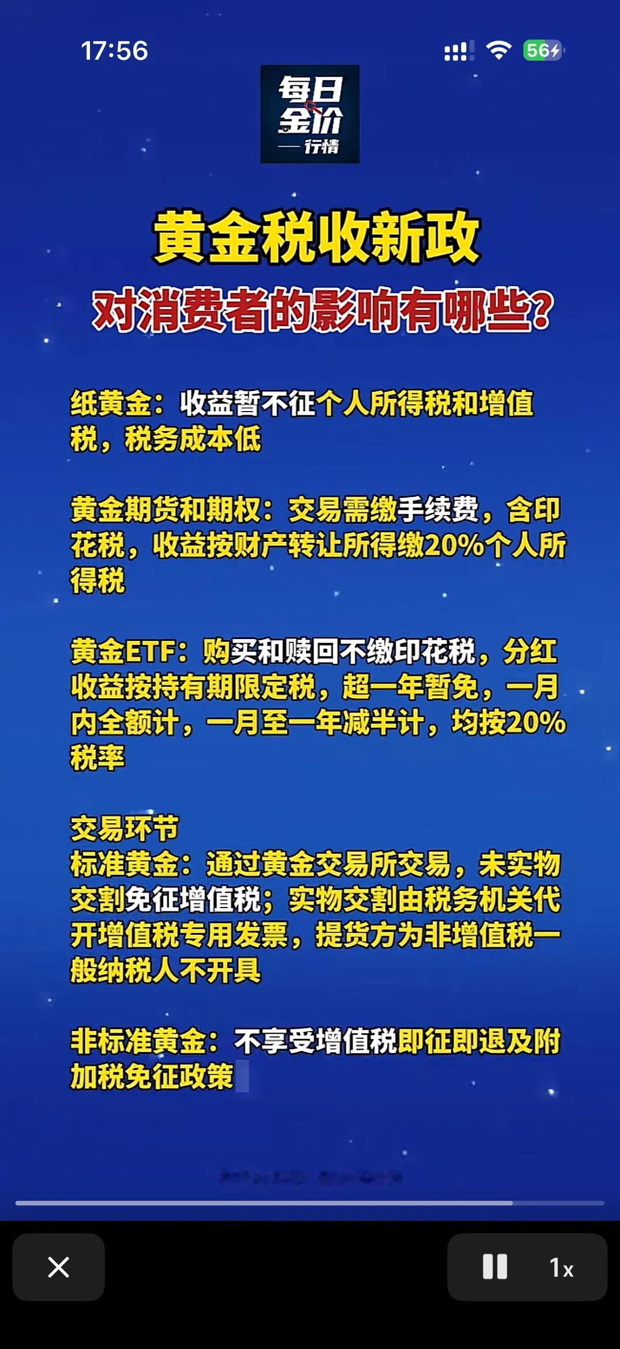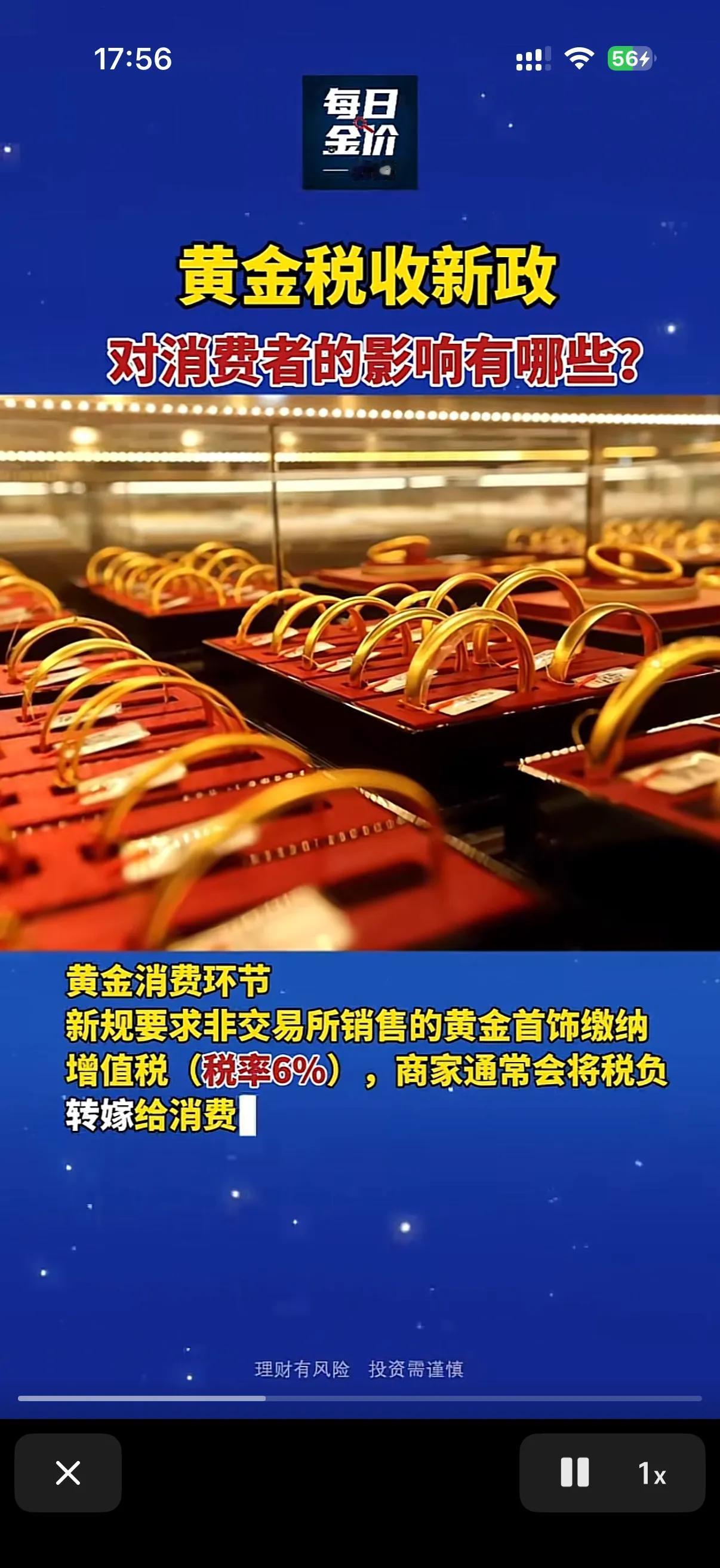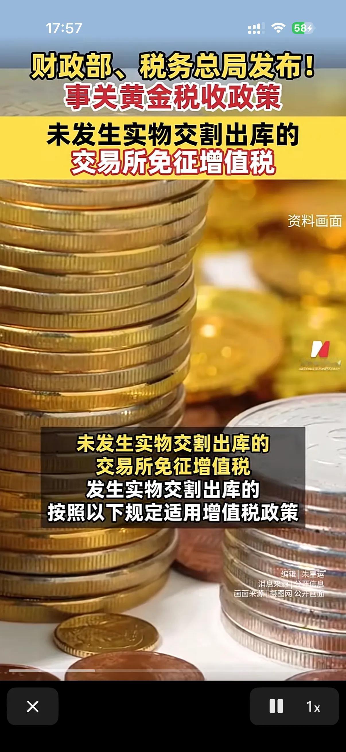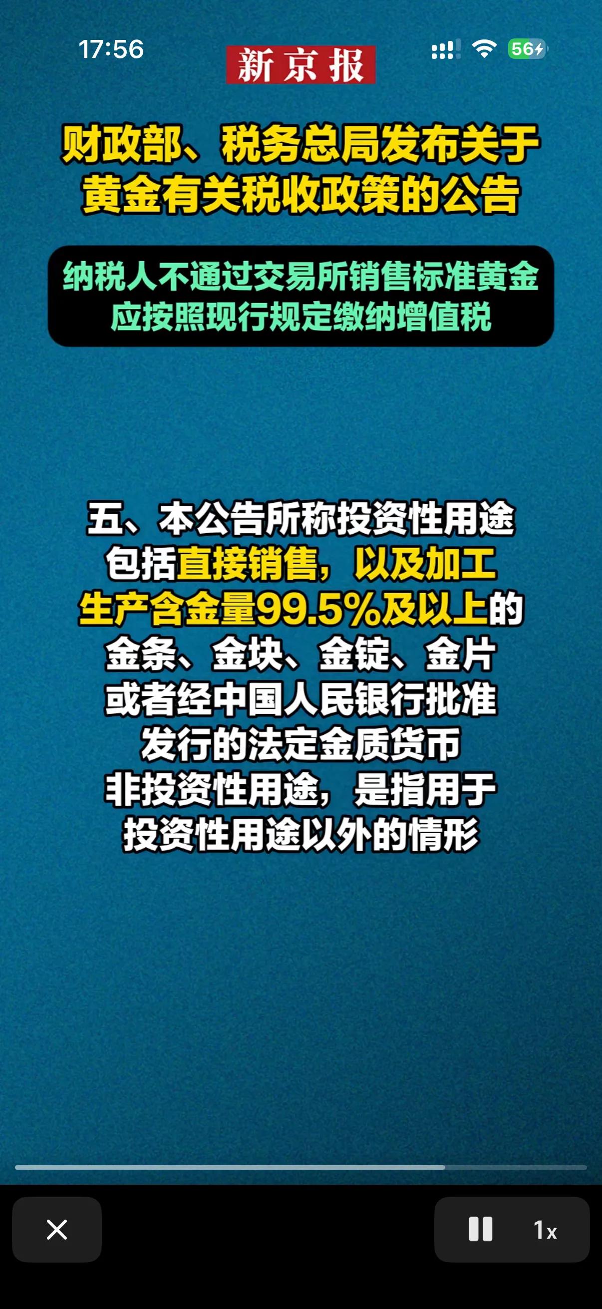 黄金要收税了! 可以说这个周末对于实物黄金的投资者来说绝对算不上一个好的节假日! 因为以后黄金食物交易要收税了,而且还不便宜!百分之13的税! 财政部和税务局发布了最新黄金税收的公告,称以后纳税人不通过交易所销售标准黄金要缴税了! 有些人想我私下里去找二手回收的卖,那就不用缴税了,只能说你们想简单了! 这个规定很多人解读是,当你买黄金首饰和金条这些物品的时候会直接缴纳着百分之十三的税收! 如果是低价位买的黄金饰品或者金条还好,毕竟有机会涨回来这谁受价格,但要是在高位买的那可就惨了! 不过线上黄金交易却不用交税! 一时间不少黄金投资者不知道自己到底该屯实物黄金还是应该继续线上交易了!