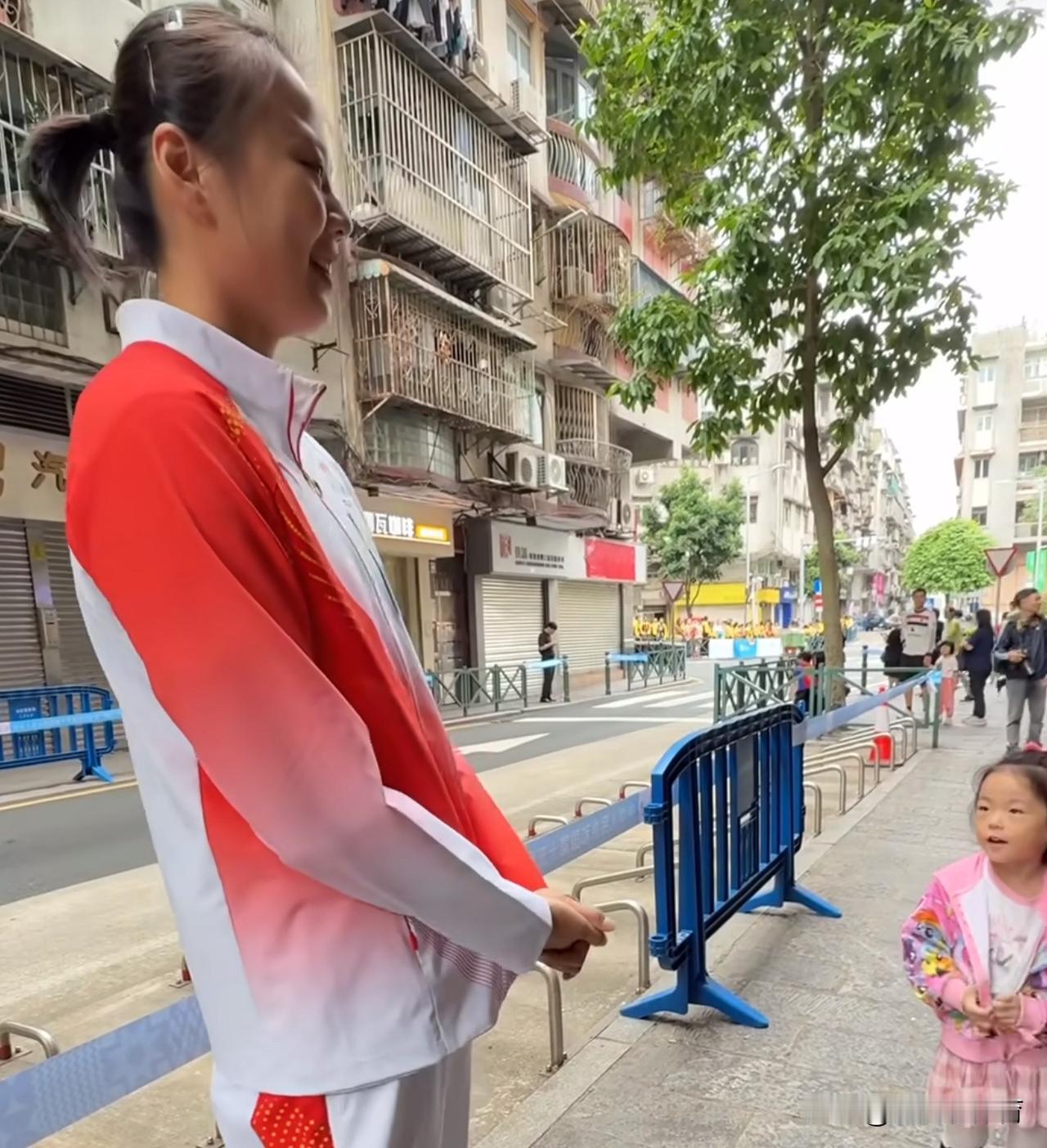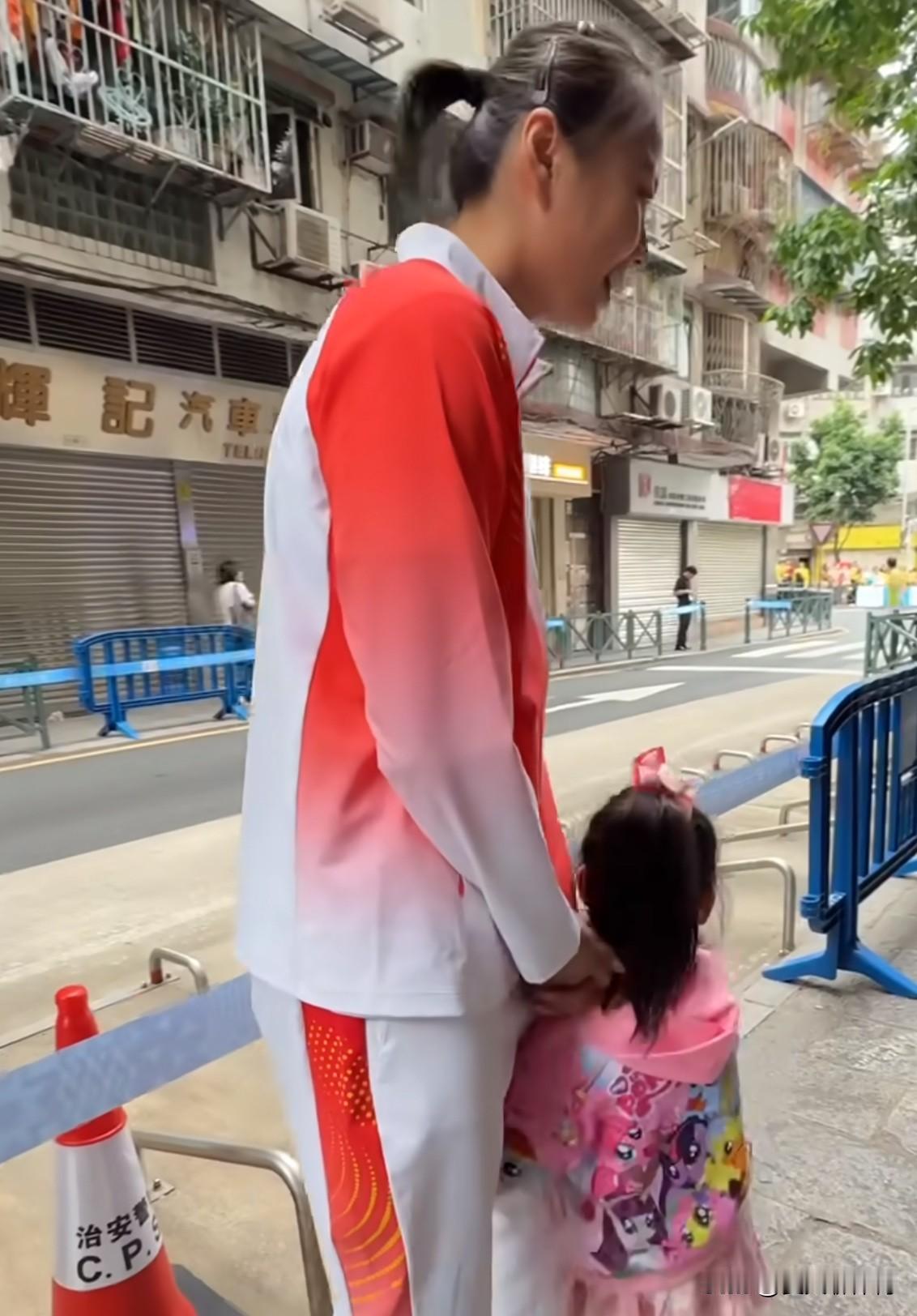 龚翔宇也是当上火炬手了!全运会第41棒火炬手,来自我们中国女排的队长、江苏女排队长龚翔宇!大长腿小步挪,有点难为人家龚翔宇了!看在等待火炬手时,一位可爱的小女孩儿过来抱着龚翔宇的大腿,看小姑娘抱大腿抱得多紧,都不舍得送开!看来江苏女排已经抵达澳门了,下周五全运会女排开赛!