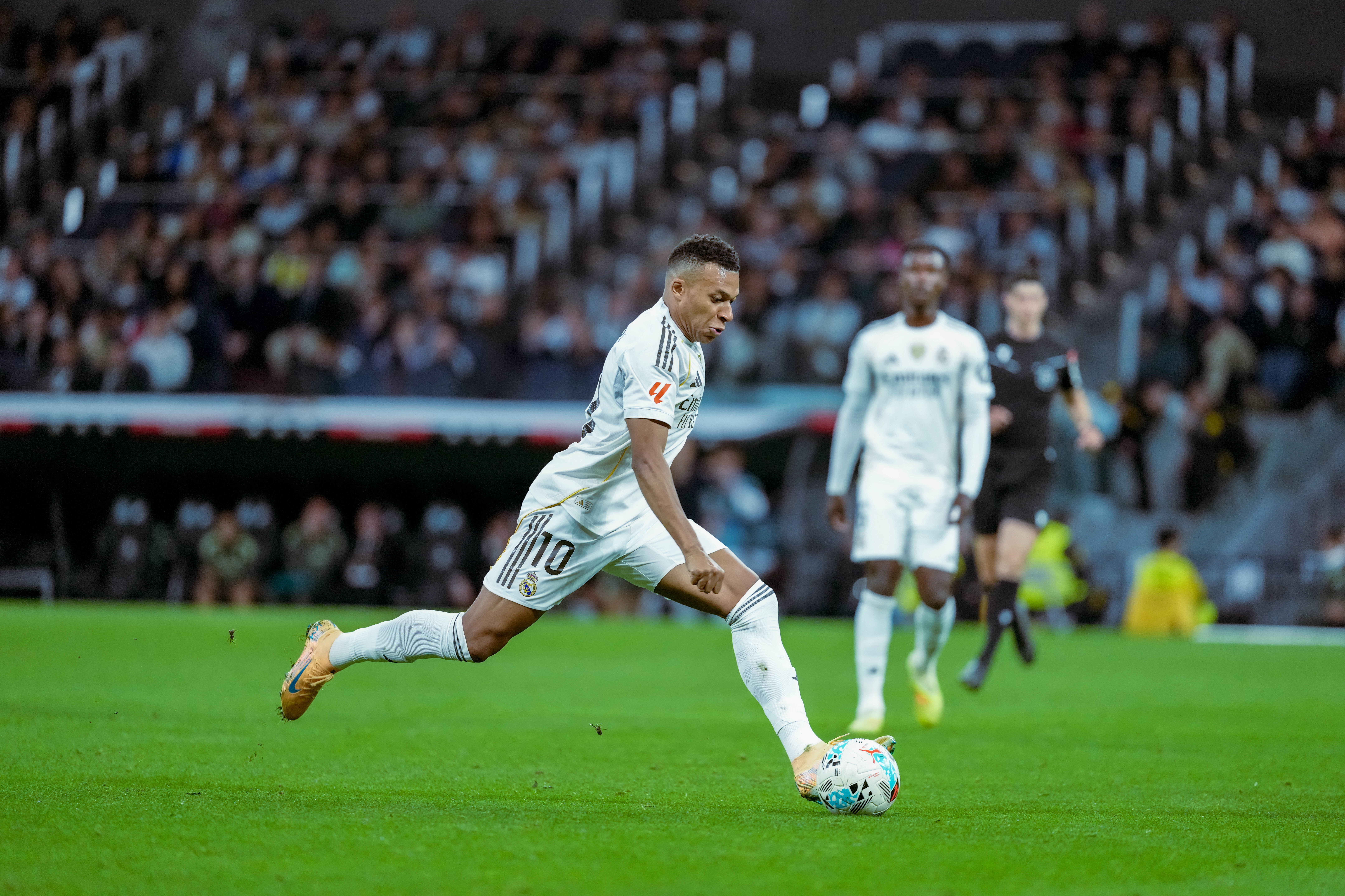 虎扑11月02日讯西甲联赛第11轮,皇家马德里主场4-0大胜瓦伦西亚。姆巴佩在本场比赛上演梅开二度。