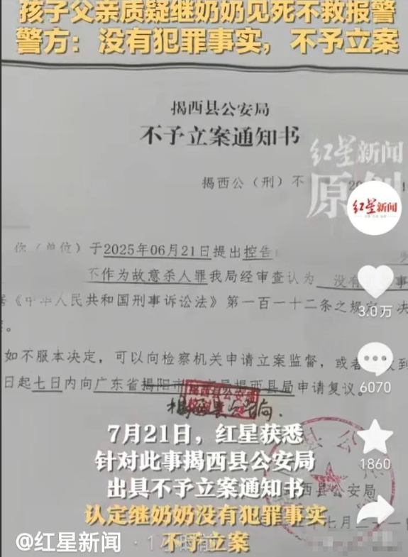 7月21日,当地警方对于孩子父母提出的控告出具了一则“不予立案通知书”。