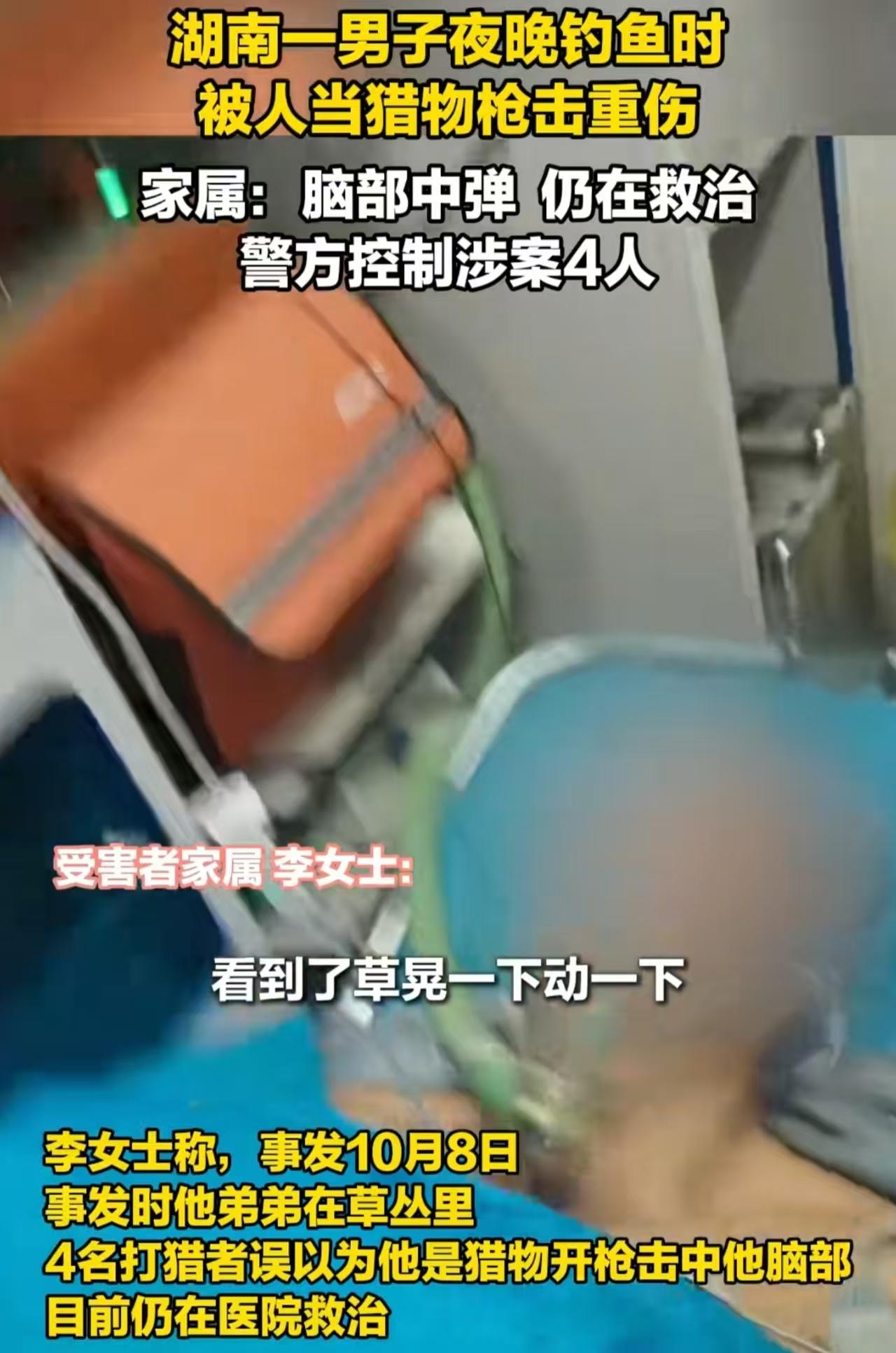 钓鱼佬夜钓的时候可要注意了,近日,湖南省益阳市南县一男子夜晚在湖边钓鱼,被4人当做猎物击中头部,至今仍处于昏迷状态。 据受害者家属了解,该事件发生在十月初的时候,当时该男子去洞庭湖附近水域钓鱼,这个地方本来是禁止钓鱼的,于是男子选择了晚上去钓。当晚他正在钓鱼的时候,附近有车辆经过,于是他选择躲进了草丛中,草丛一起一伏的,被当地4名打猎者误以为是野物在活动,于是他们举起猎枪朝男子所在位置打去,击中了男子的头部,目前男子仍在医院进行救治中。 这已经是今年出现的第三起猎枪或者气枪伤人事件了,首先男子私自去禁止钓鱼的地方钓鱼,就已经很危险了,因为这种地方一般缺乏防护措施,而且去的人很少。其次,在明令禁止狩猎的情况下,4名男子仍然私自持猎枪狩猎并误伤路人,实在是胆大包天。目前,4名狩猎者已被警方控制,等待他们的将是法律的严惩。