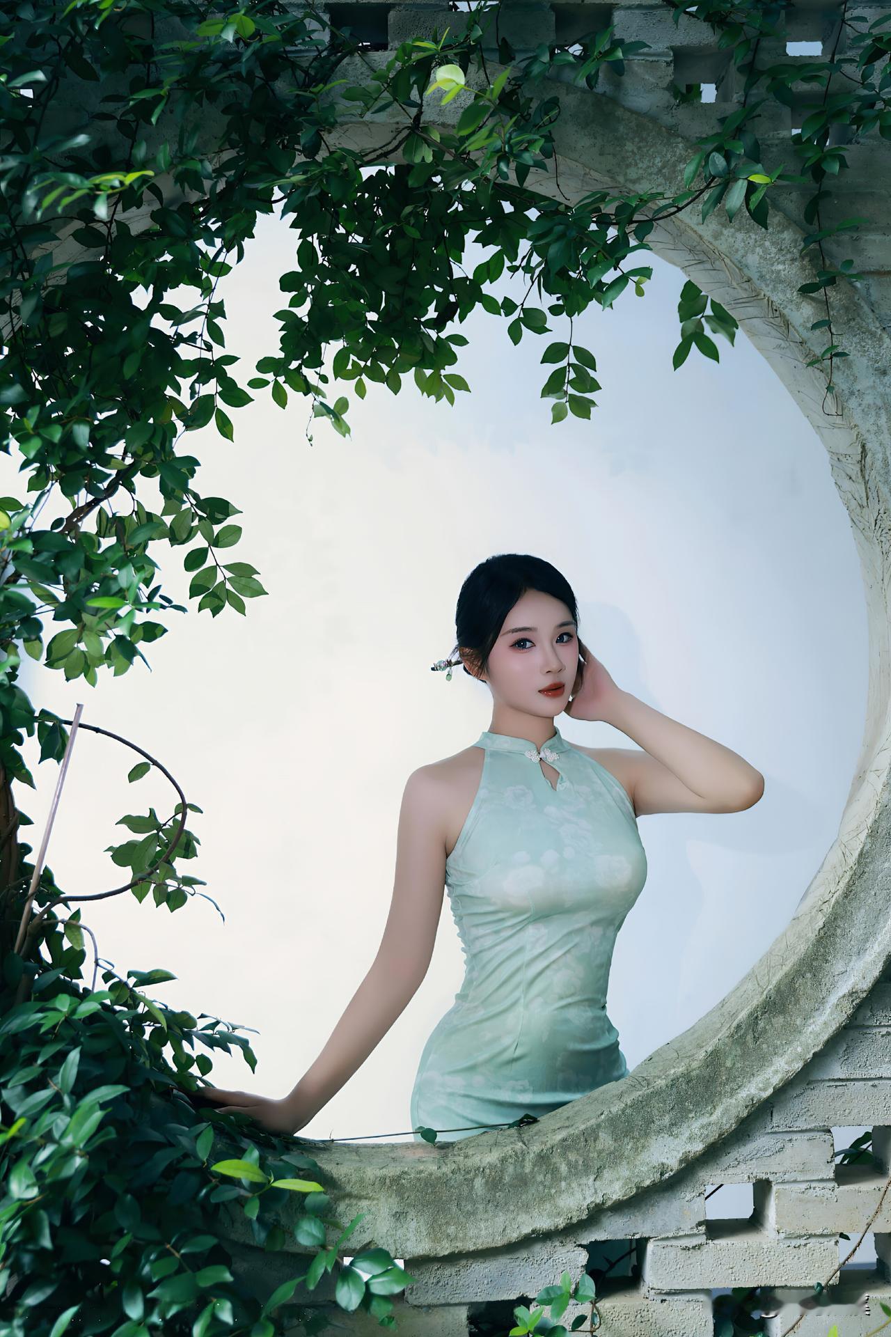 一襟烟雨,一袭旗袍,在绿意葱茏处定格国风美学二