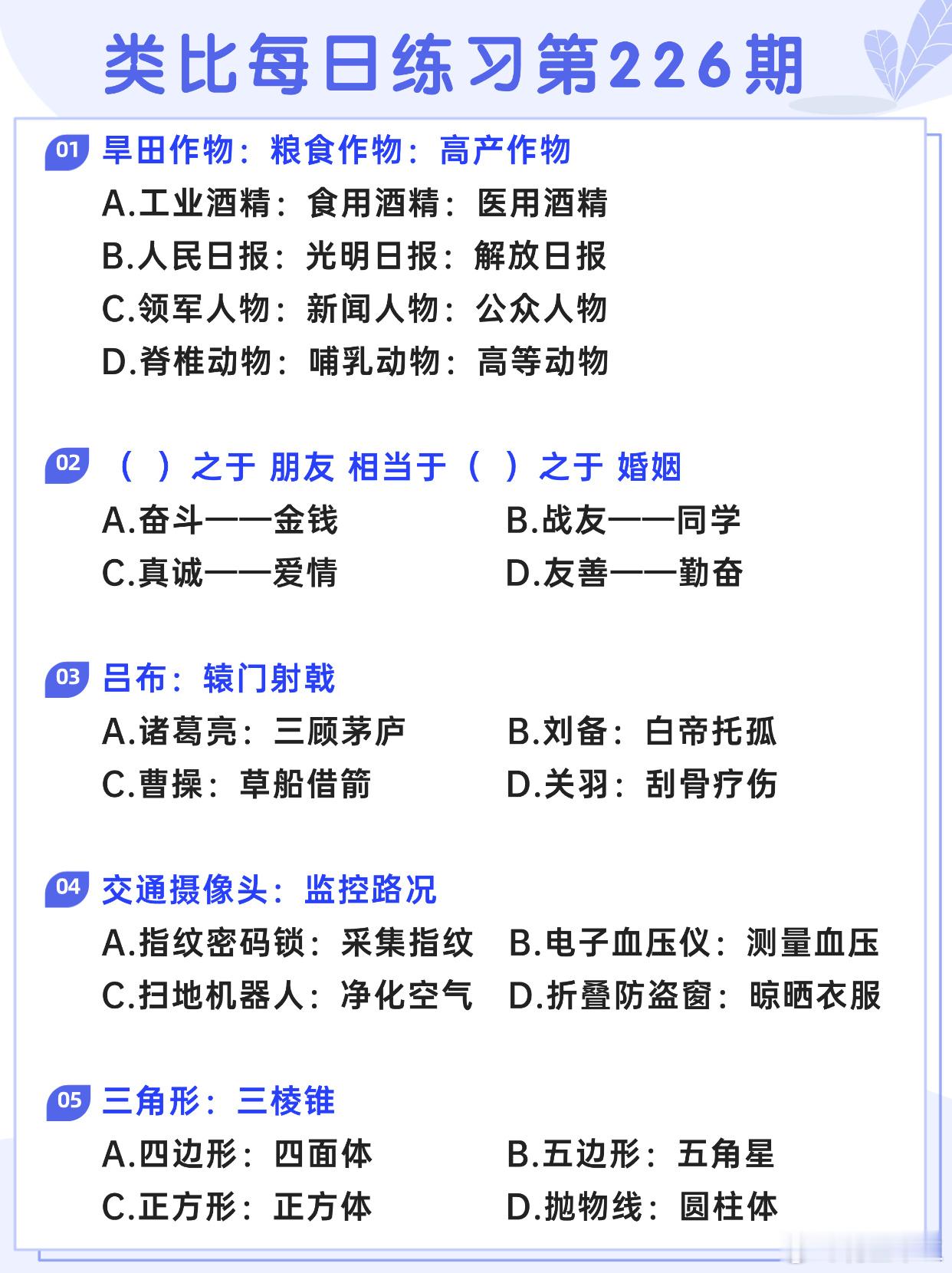 图推类比每日练习第226期图推难度:☆☆类比难度:☆☆开学元气加油站决战公考省考