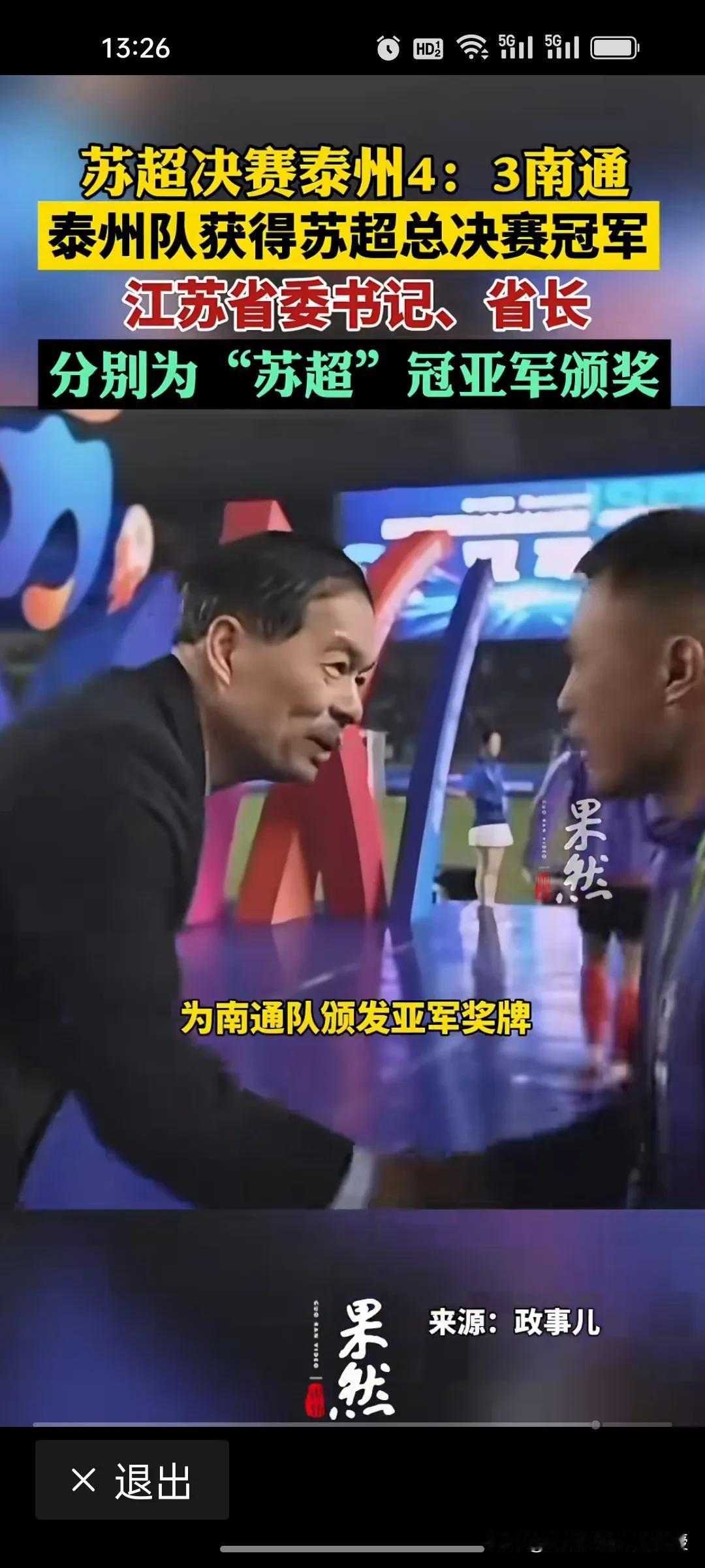 首届苏超以泰州队获胜而顺利结束了,但是苏超爆火反映出的领导者管理智慧的含金量还在上升! 苏超从比赛开始到结束都没有领导发言致辞,就在昨天冠亚军之战结束后,才有江苏省委书记和省长来给冠亚军发奖牌🏅,期间比赛的时候,省长省委书记来看比赛,连个椅子和姓名牌都没有,也没有瓶水,就是跟观众一起站着看,一起为球队加油。这恰恰是江苏政府对群众赛事最深刻的理解与最真诚的尊重。 从来没有冗长致辞,没有刻意排场,领导们与数万名观众一同站立观赛、呐喊助威。他们把焦点留给比赛。这份“到位不越位”的治理智慧,正是“苏超”火爆的关键。正所谓:领导的站位,就是治理的温度。