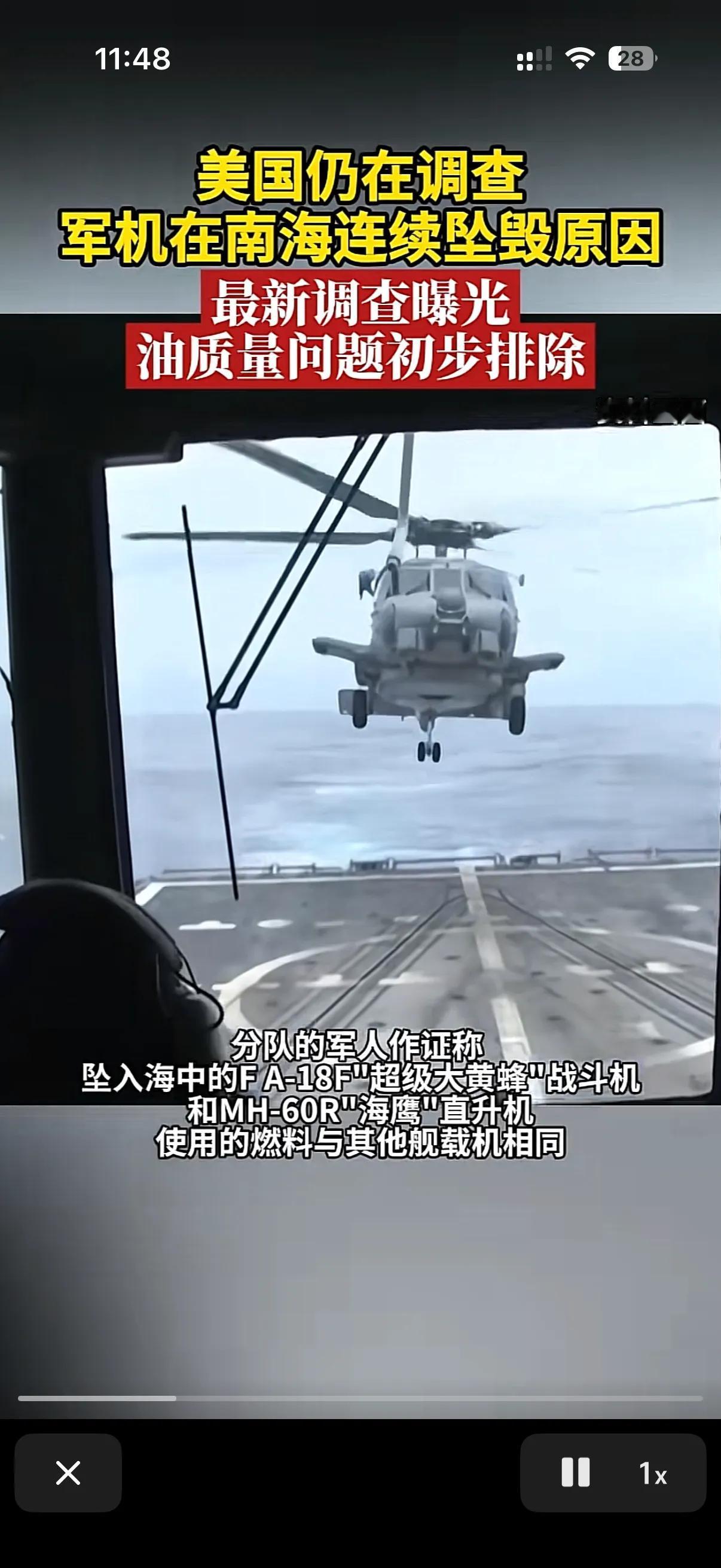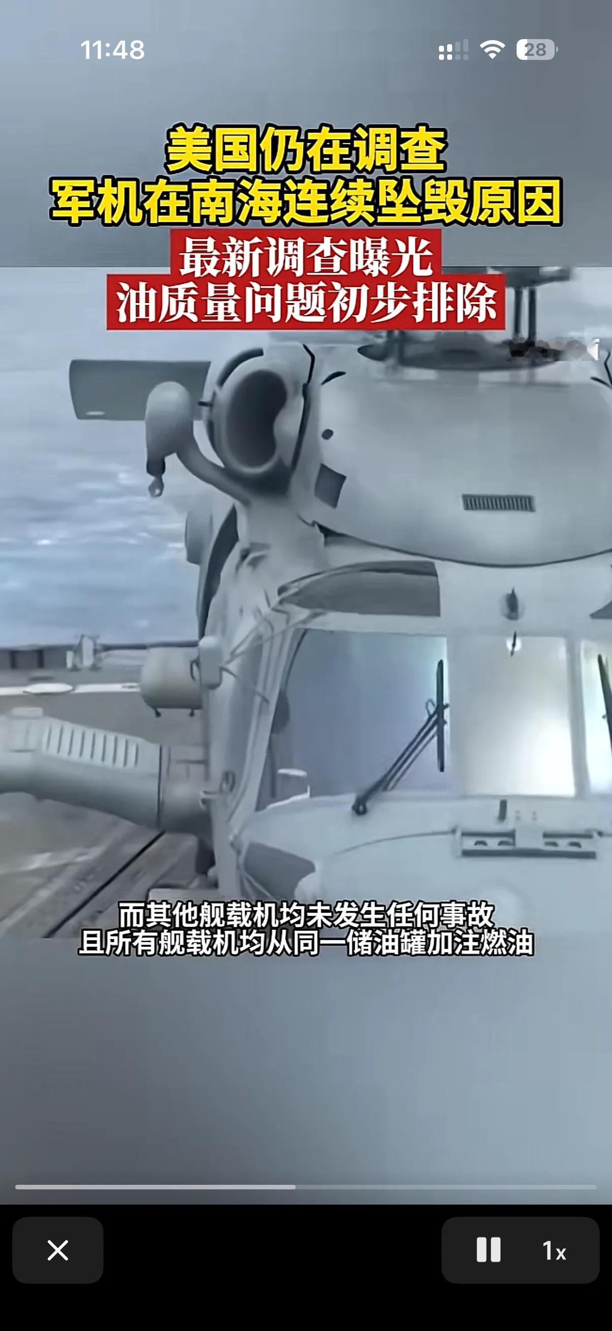 美军南海坠机有内幕! 很多人当初都猜测美军的南海坠机是被不明势力袭击导致,或者是美军的一起系统软件出了故障! 但是当时美国总统特朗普却说,这很有可能是因为失事坠落的两架飞机用了不和规格的劣质油才会导致的坠机事故! 现在美国海军初步查明了,这两架飞机坠落绝对不可能是因为燃料问题,因为两架飞机的燃料是统一供应的,和其他飞机一毛一样! 现在已经排除燃料问题,那么下一步就是从其他可能出问题的方面来继续查找了! 现在所有人都认为这次的美国飞机在南海坠落绝对不是巧合了! 看来事情越来越有趣了!