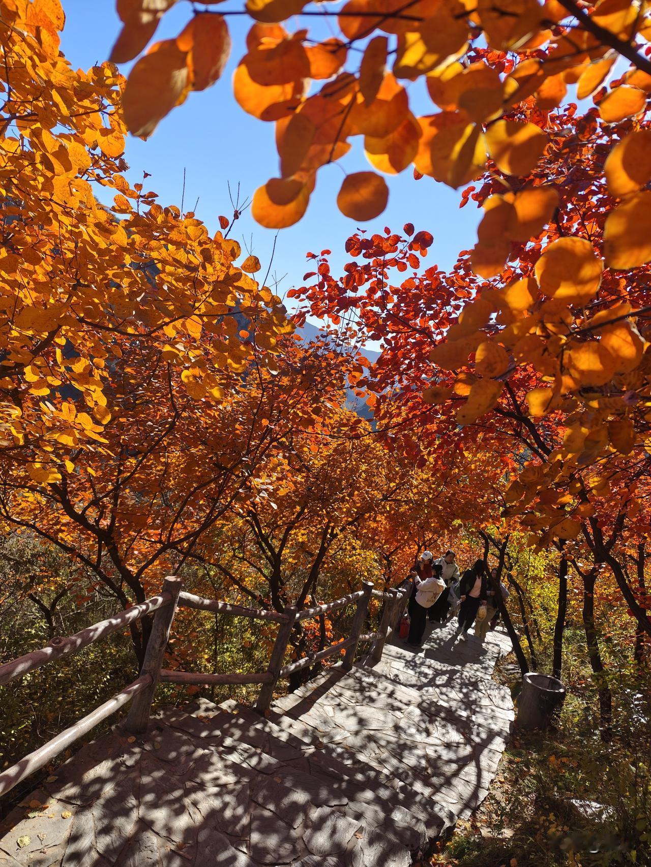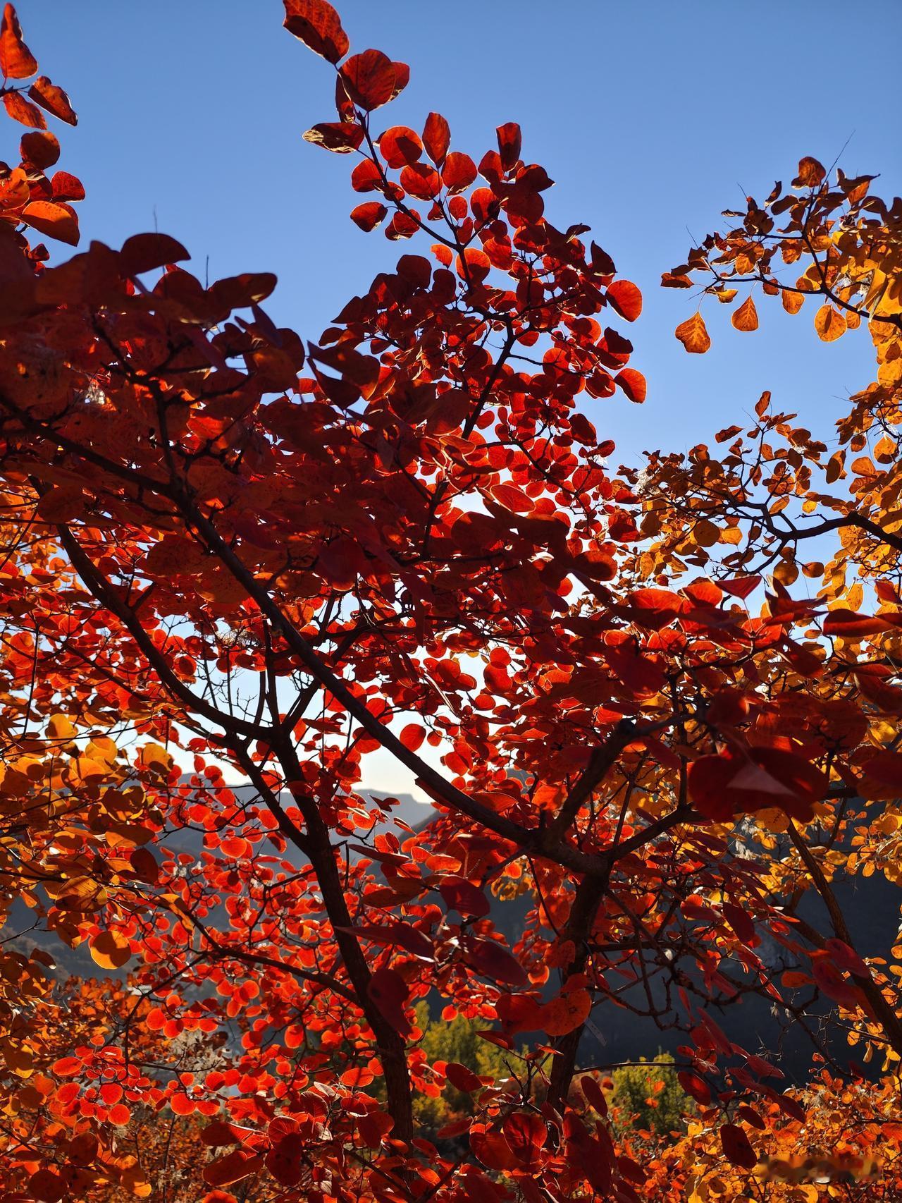坡峰岭的红叶到了最佳观赏期,可以说到了一年最红的时候。 上周六由于天气不是特别好,上山待一会儿坐缆车就下来了,今天醒过来一看天气不错就有爬山的冲动。 去的时候怕堵车,可是没想到交通好的很,一点儿也不堵,比预想早到了1个小时,以至于登山时几乎没什么人,一个人走在台阶上一种空灵感由生。 一口气蹬到云湖,在草坪上晒了一个小时太阳,又去了鹰嘴岩,见人越来越多才开始下山。 到了山脚下吃碗18元饸饹面,还麻烦服务员舀了碗面汤,热乎乎的出层汗,把登山的疲倦的去掉了。 12点多坐摆渡车回到1号停车场,回来的路上进山的车不多,不像上周六车堵了几公里,这可能是周日的原因,明天要上班所以出来玩的人少了。