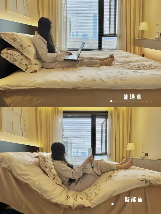 对比其他传统的电动床,这款智能床垫不需要把之前的床架换掉,也不用安装电动排骨架。