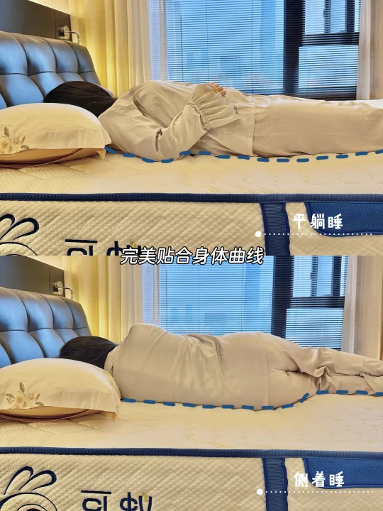 对头部、腰部、臀部这几个重要位置的承托支撑性都很好,翻身也没有异响。床垫表面是裥棉层面料也很亲肤透气。