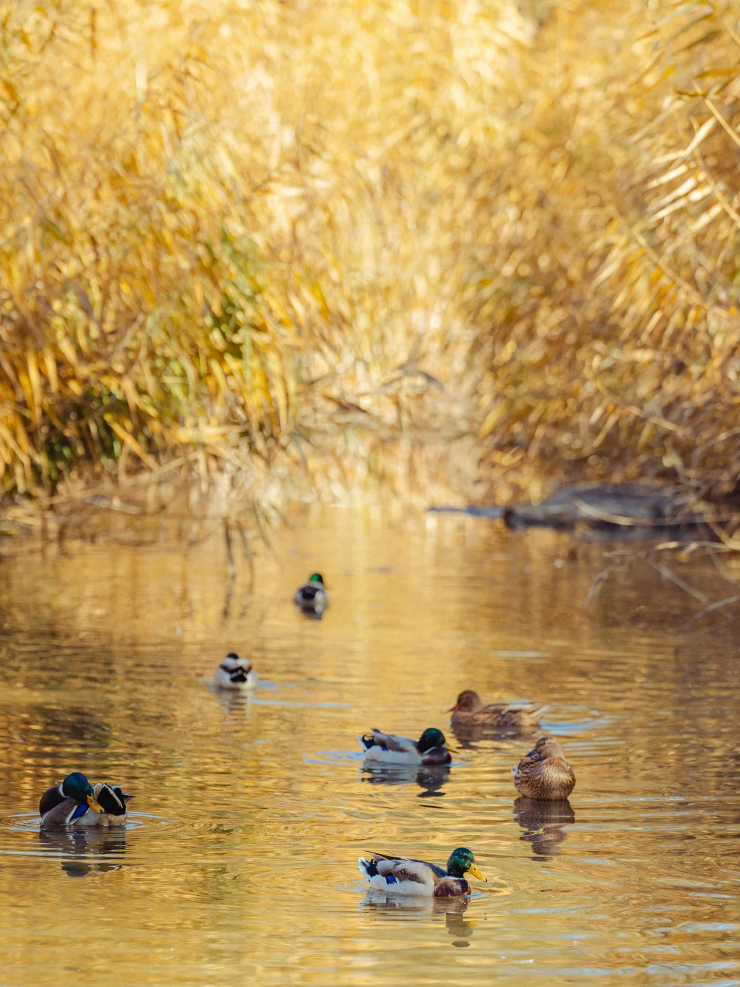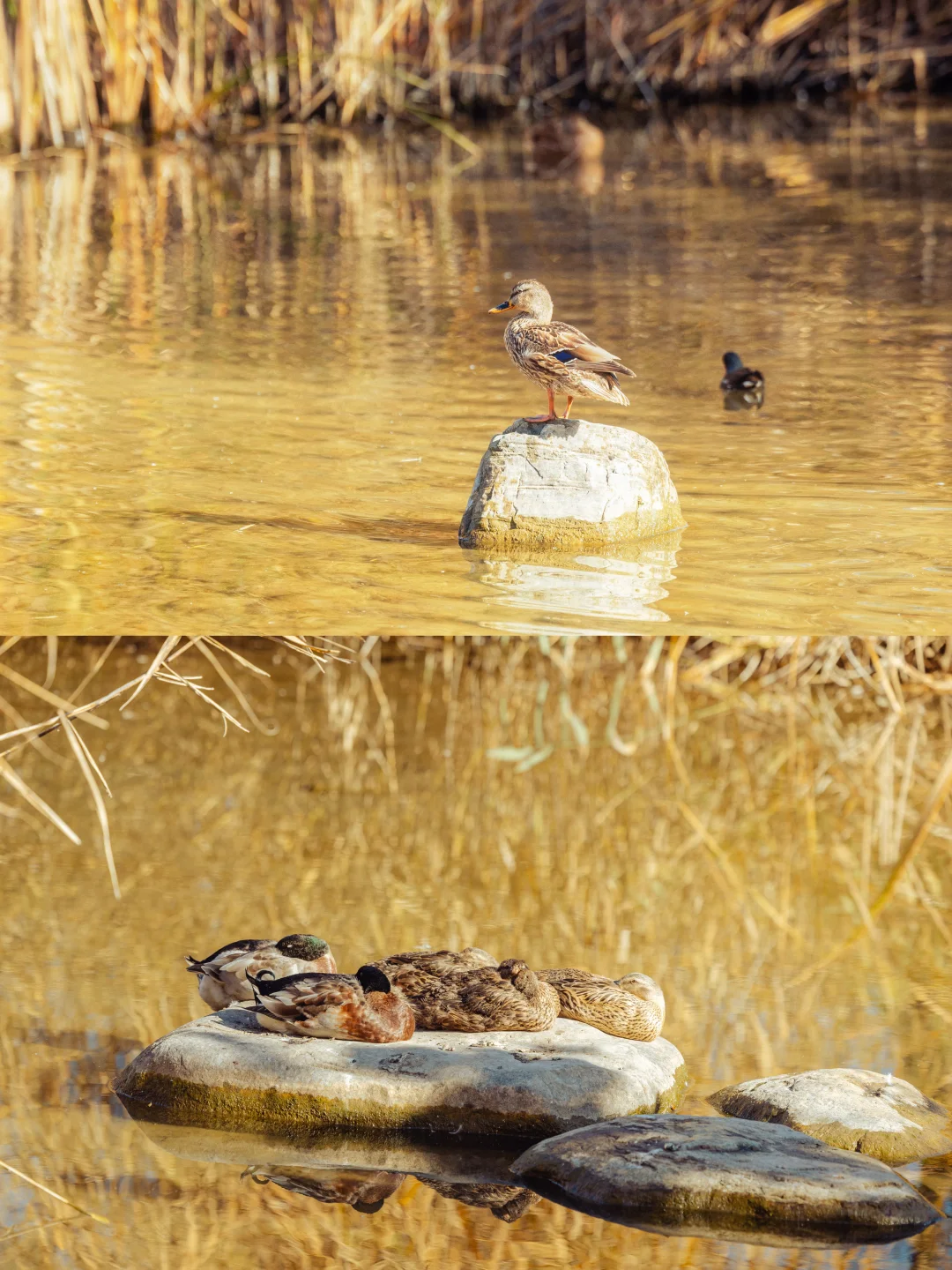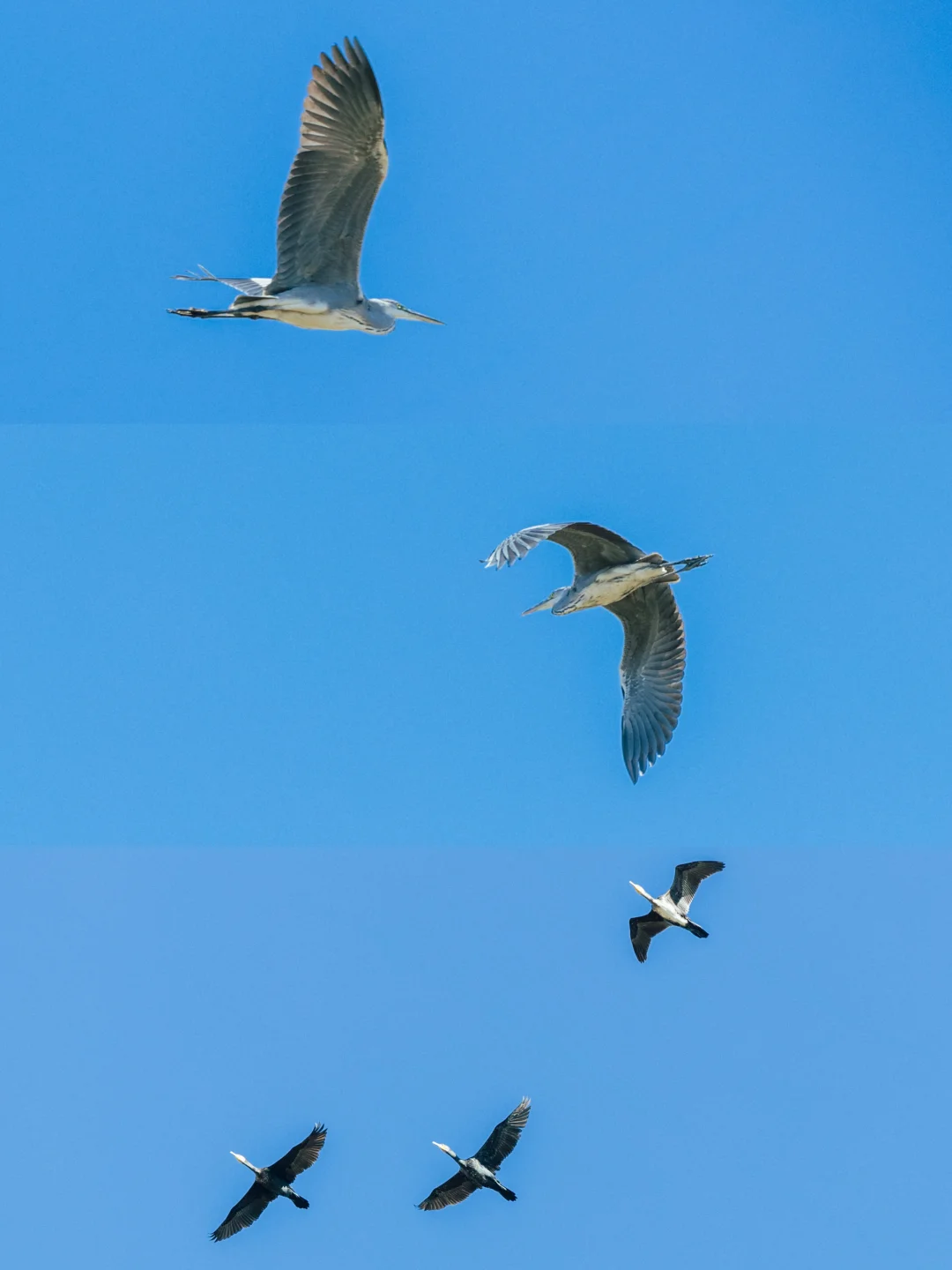 灰喜鹊和喜鹊在枝头蹦跶,黑白配色自带喜感;绿头鸭和灰雁、鸿雁在水面悠游,划开一道道温柔的水痕;鸬鹚和苍鹭则静静伫立岸边,像个沉稳的“老猎手”。
