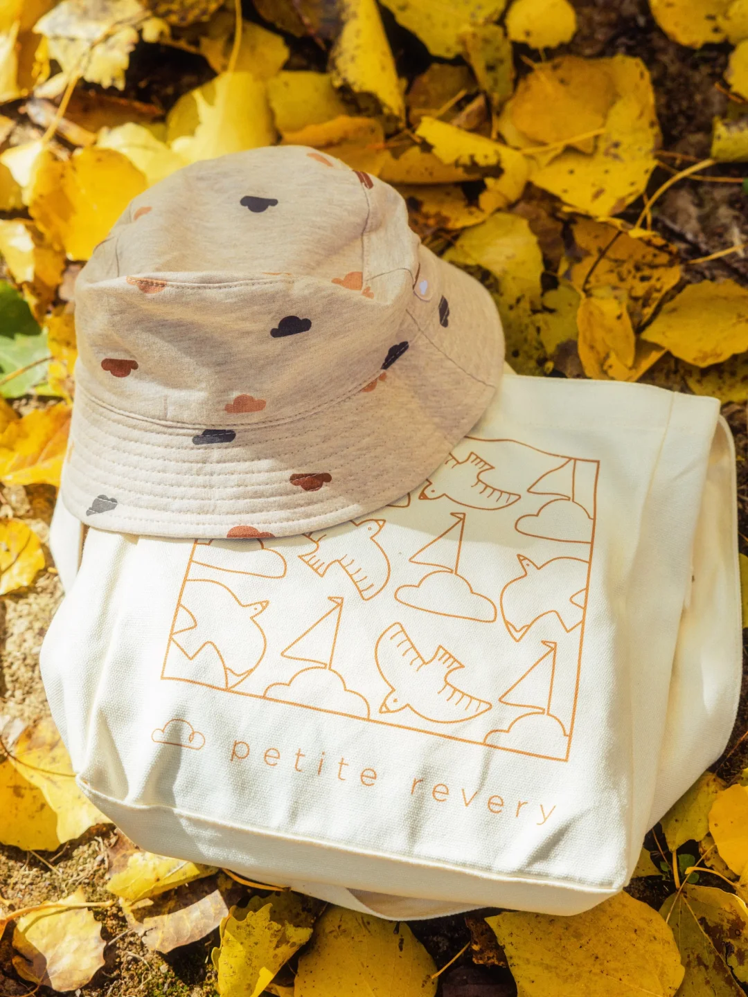 给芙芙搭配的是来自Nest Designs旗下的PR小云朵☁️童装系列。没想到从小穿到大的nest也出了童装,防晒渔夫帽和帆布包都非常实用~