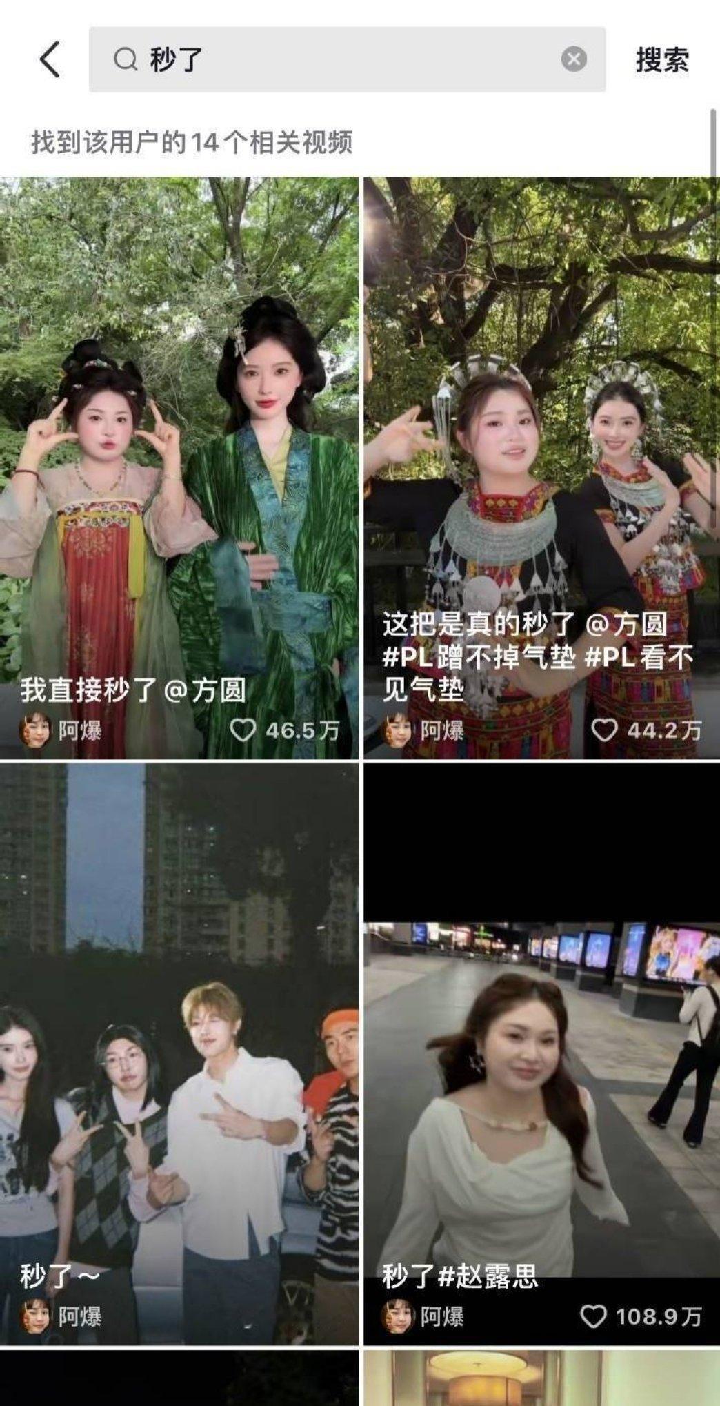 抖音网红阿爆帮赵露思打歌,文案是常用的口头禅秒了,有人因为秒了两个字发疯了一天