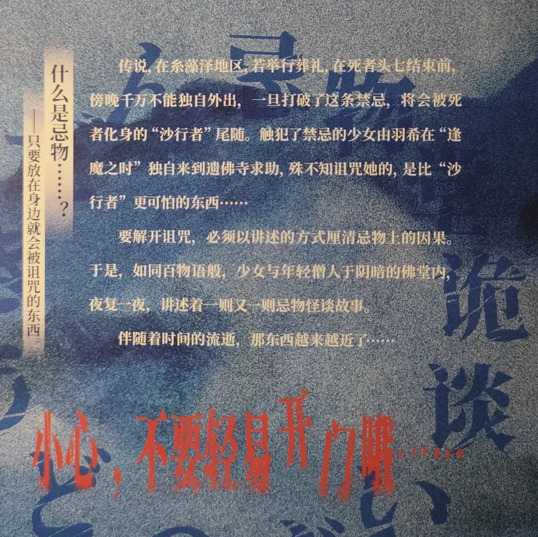 外婆去世后,葬礼上突发异变。由羽希躲过死者化身的沙行者追逐,夜入几近荒废的遗佛寺,向年轻俊美的僧人天空求助。专业处理会作祟的“忌物”的天空,提出了帮忙的代价——之后几夜,她必须在逢魔时刻前来听自己讲述关于忌物的怪谈。
