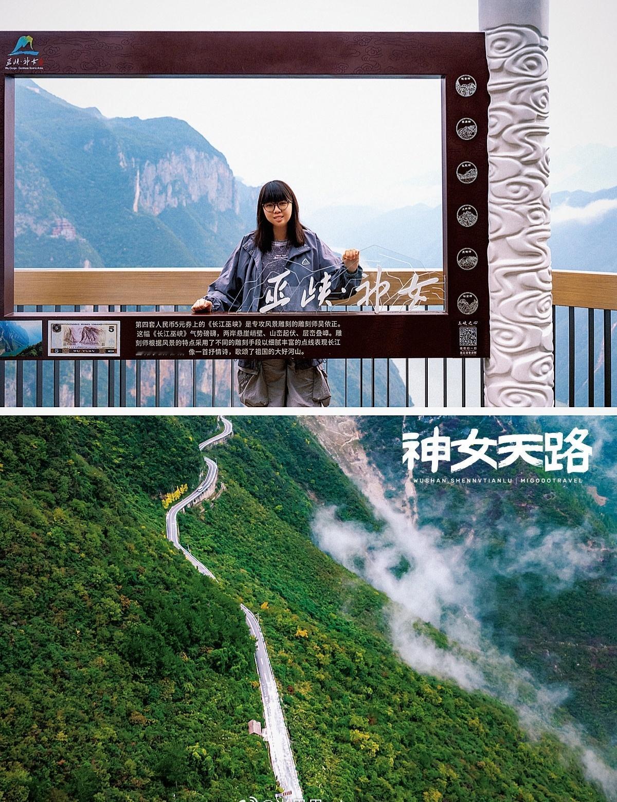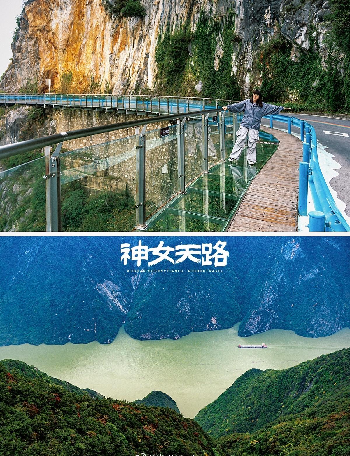 重庆周边游|邂逅长江与巫山红叶的仙境之路 带着米果环中国雄奇山水新韵重庆我在重庆超出片 🍂神女天路概况: 全长:12公里 海拔:平均1200米,盘绕悬崖峭壁 特色:云雾缭绕如“天空之路”,秋冬红叶漫山、云雨朦胧,是摄影与自然爱好者的绝佳目的地。 💚黄金体验季节:11月下旬至12月底 ✅ 万山红叶层林尽染,色彩斑斓如油画 ✅ 巫山云雨频发,云雾与长江、峰峦交织成诗 ✅ 摄影建议:携带长焦镜头捕捉神女峰细节,清晨易遇云海奇观。 🌟行程亮点: ✨ 长江与神女峰同框的震撼视角 ✨ 穿梭云雾,体验“行走天空”的飘逸感 ✨ 五大平台多维度捕捉巫山秋冬之美 🎈游玩方式: 推荐乘坐观光车盘山而行,轻松穿行险峻山路,沉浸式体验云雾中穿行的梦幻感。 🕐开放时间:08:00-17:00 🎫景区门票:免费,交通费40元 📍详细地址:重庆市巫山县黄岩村