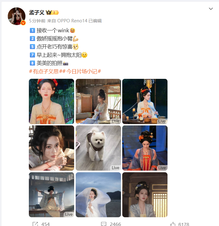 孟子义美美拍照的场景丰富,她的 wink 动图尽显俏皮,曾在户外竞技类综艺中展现