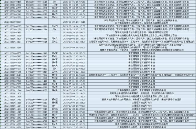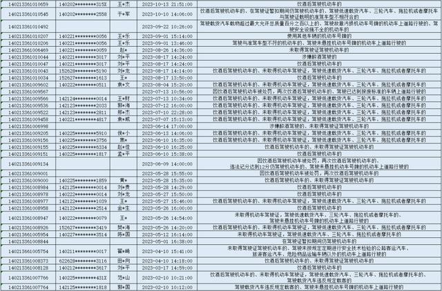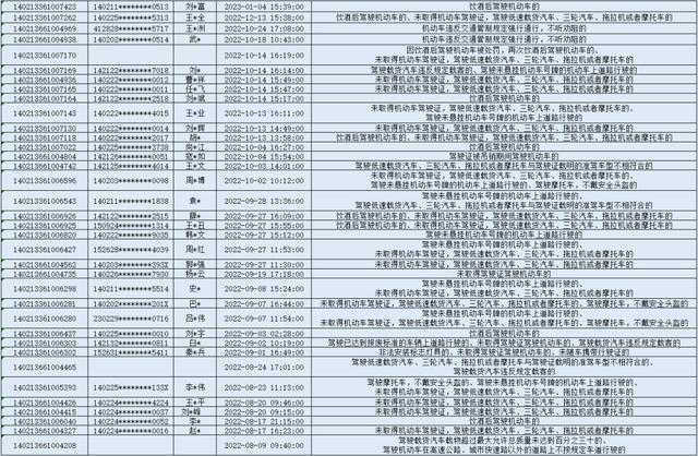 下列183名违法行为当事人存在未处理的饮酒后驾驶机动车、无证驾驶等交通违法行为,自本通告发布之日起15日内,携带本人身份证、驾驶证、行驶证原件、涉案车辆相关凭证等材料到大同市公安局交通管理支队勤务保障大队接受处理。