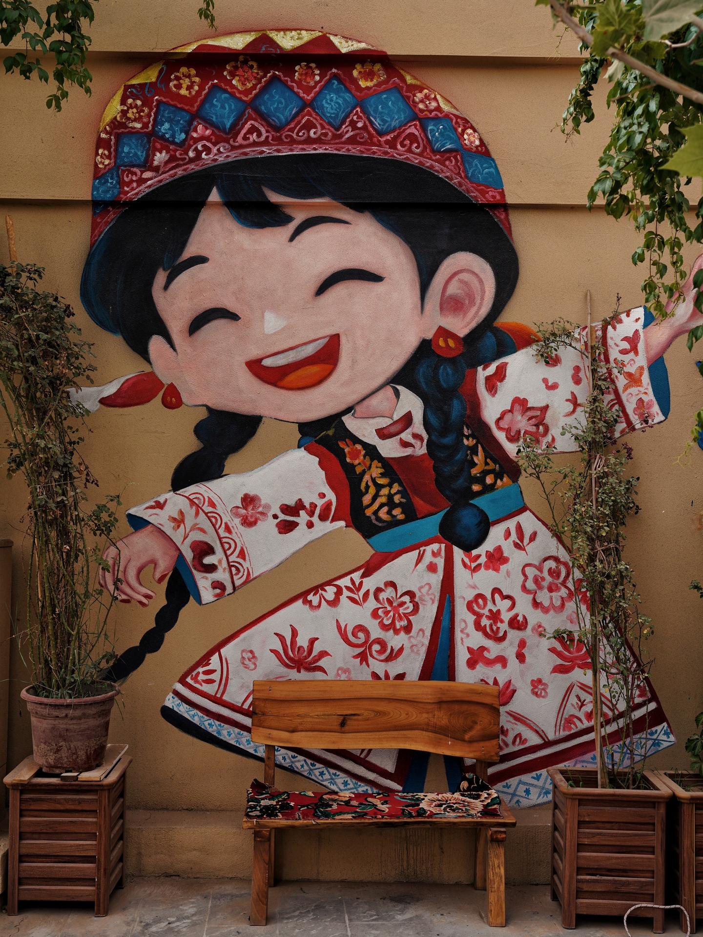 墨玉老城 它真的一点都不老 💁🏻网上大博主嘴里的墨玉老城:有千年历史的南疆老城,烟火气十足无商业化,和田的小喀什,新疆必打卡… 👀我看到的墨玉古城:统一颜色的新房,千篇一律的墙绘,确实很原生态,因为几乎没啥游客,无商业化是因为店铺几乎都关着门,重修改造有点用力过猛,网红标语很突兀,妥妥一个拆旧建新的实例,后来我逢人便说别来墨玉老城… 👣步行路线 清真寺➡️ 老城入口➡️ 广场灯光塔➡️ 大舞台➡️ 朝阳巷➡️ 和谐巷➡️ 墙上博物馆➡️ 老城夜市 我到不是吐槽墨玉老城有多不堪,我看几个小姐姐