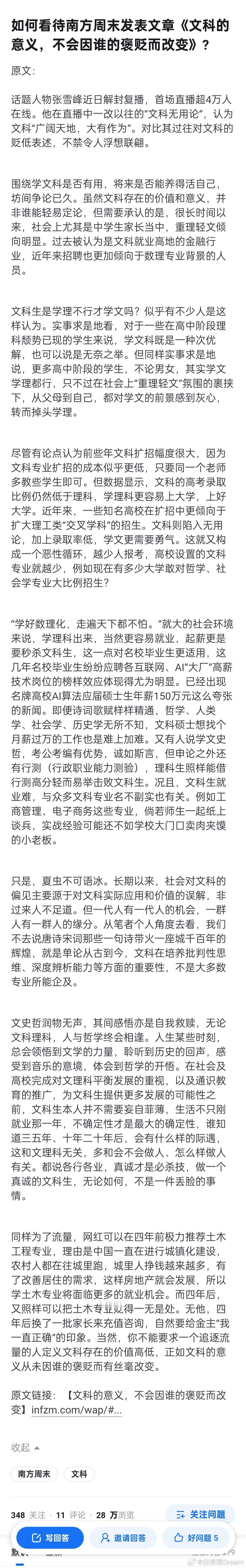 如何看待南方周末发表文章《文科的意义,不会因谁的褒贬而改变》?[流汗][流汗]