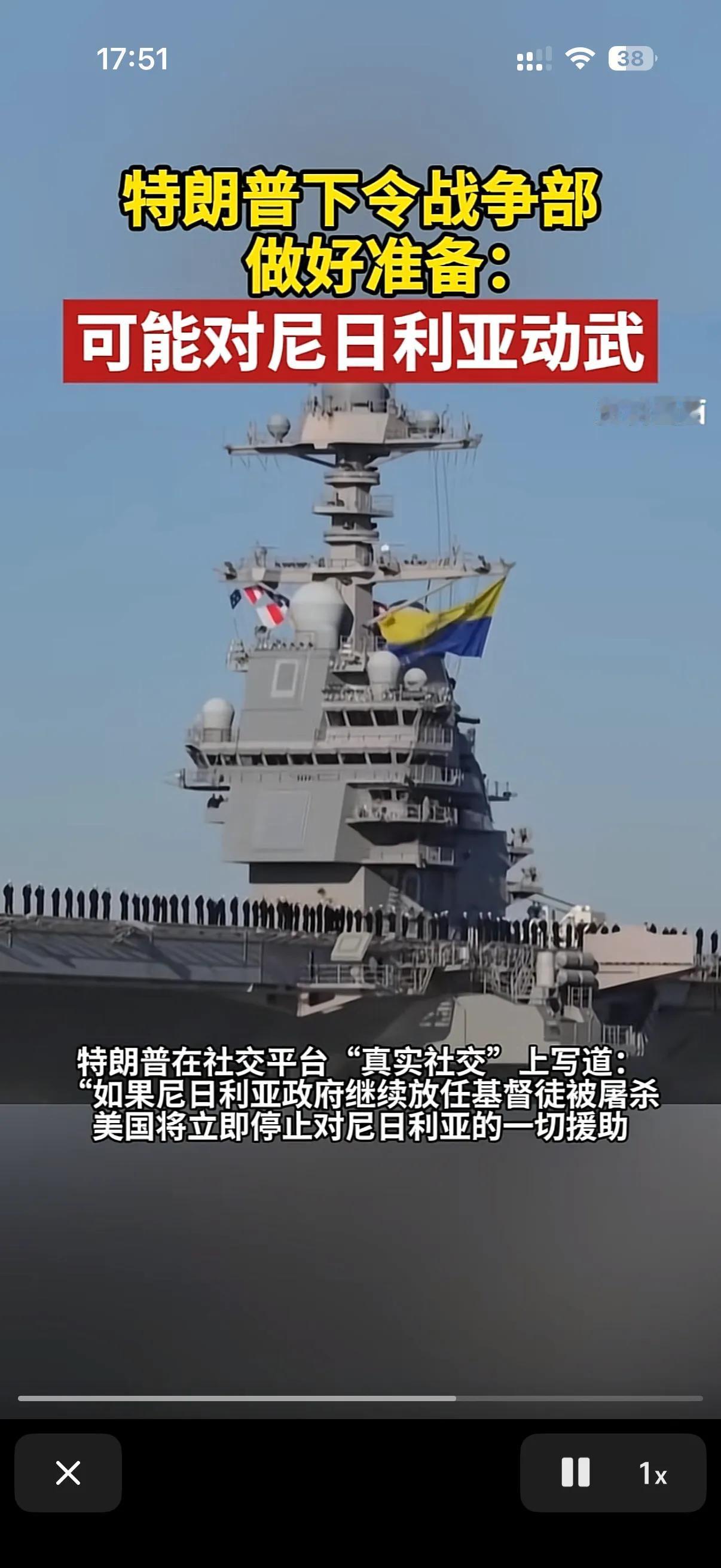 这是又要来十字军东征了么? 特朗普下令美国军队随时准备对尼日利亚动手! 理由就是尼日利亚政府放任基督徒被屠杀,那么美国不但要停止对尼日利亚的一切援助,还要动用武力干预,让声誉扫地的国家停止暴行! 听着怎么那么像中世纪的十字军东征啊! 不得不说,如果特朗普真的打着拯救基督徒的口号来对尼日利亚动手的话,还真有可能获得不少基督教徒的支持的。目前尼日利亚政府对特朗普的这个警告还没有作出任何的回应!