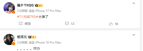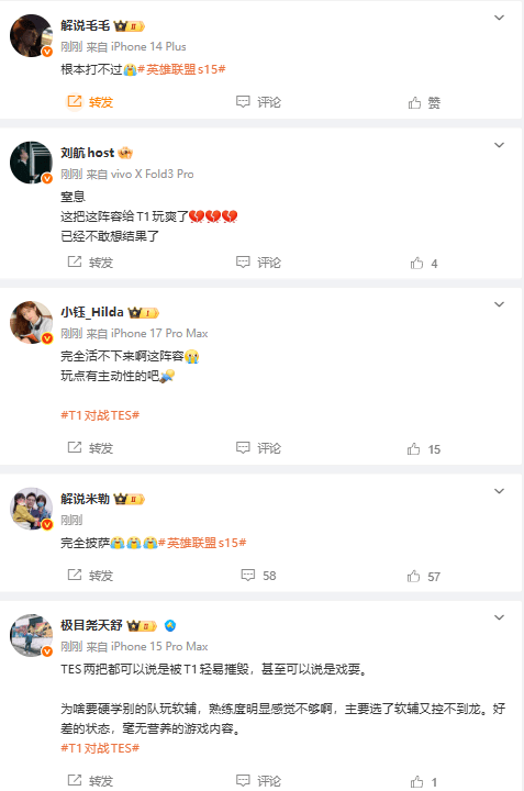 天舒:TES两把都可以说是被T1轻易摧毁,甚至可以说是戏耍。
